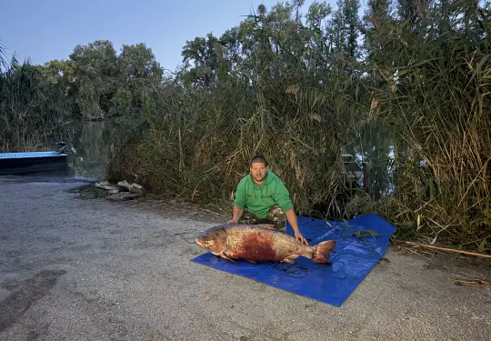 Cimborámmal Rék Attilával úgy döntöttünk 2025.09.28.-án késő délután, hogy le megyünk a szolnoki Alcsiszigeti Holt-Tiszára pontyozni és harcsázni . A jól bevált megszokott helyekre horgásztunk, csalinak egy szem kukoricát kínáltam fel meglebegtetve egy 12 mm-es popup-al. Este 22:48 órakor egy füstölős kapás ébresztett fel majd a bevágás pillanatában tudatosult bennem a botra nehezedő súlyból, hogy nem kis pályás ponty akadt a horgomra. Ment a huzavona. Csónakba kellett szállnunk a komámmal és elkezdődött a szokatlanul rövid ideig tartó fárasztás. Mint egy 10 perc után a hal a víz tetején lassú uszonymozgásokkal megmutatta magát! A komámmal rá is csodálkoztunk, na ez nem ponty, de nem is 15-20 kg. Pár apróbb kirohanás után a halat sikerült szákba terelni és a partra vinni. Mérések után a teljes hossza a farka végéig 150 cm, a faroktőig 135 cm. Kerülete 115 cm súlya 63,7 kg. Életem eddigi legnagyobb hala. A helyi és országos rendnek megfelelően jártunk el, miszerint ezt a hatalmas példányt nem engedhettük vissza! Remélem a közeljövőben is lesznek hasonló élményeim és ez úton kívánok mindenkinek jó horgászatot!