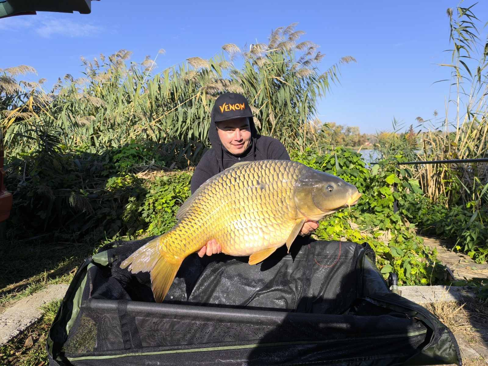 Feeder bot, 0,30-as monofil zsinór, 4-es horog. Derült idő, szélcsend, 15 perces fárasztás csónakból.
