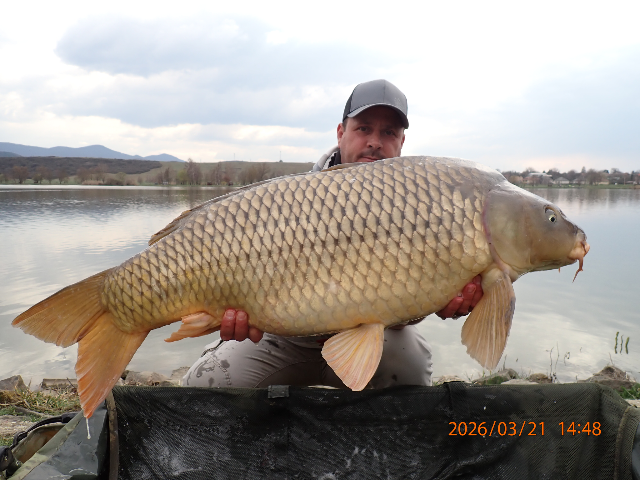 2,7 m-es 2,0 lbs bot, 0,36-os monofil zsinór, 4-es horog. Bojli csali és etetés. Hideg idő, szélcsend, 20 perces fárasztás partról.