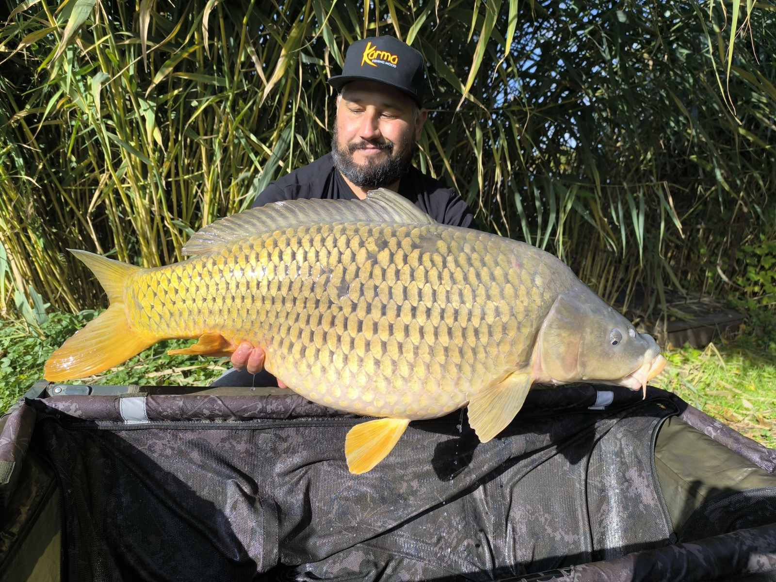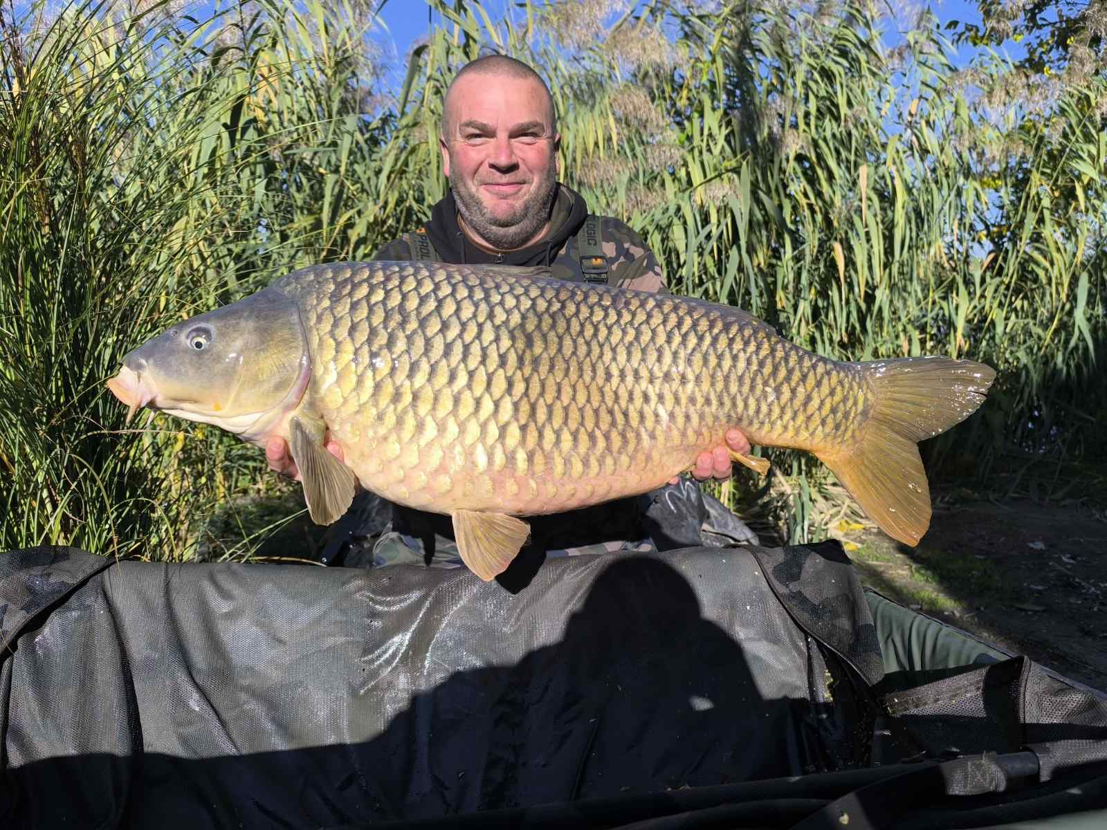 3 m-es 3,0 lbs bot, 0,38-as monofil zsinór, 2-es horog. Bojli csali és etetés. Gyenge szél, 15 perces fárasztás csónakból.