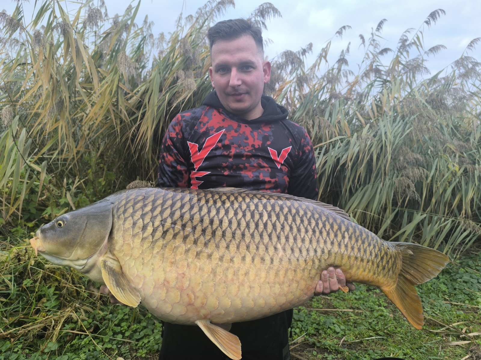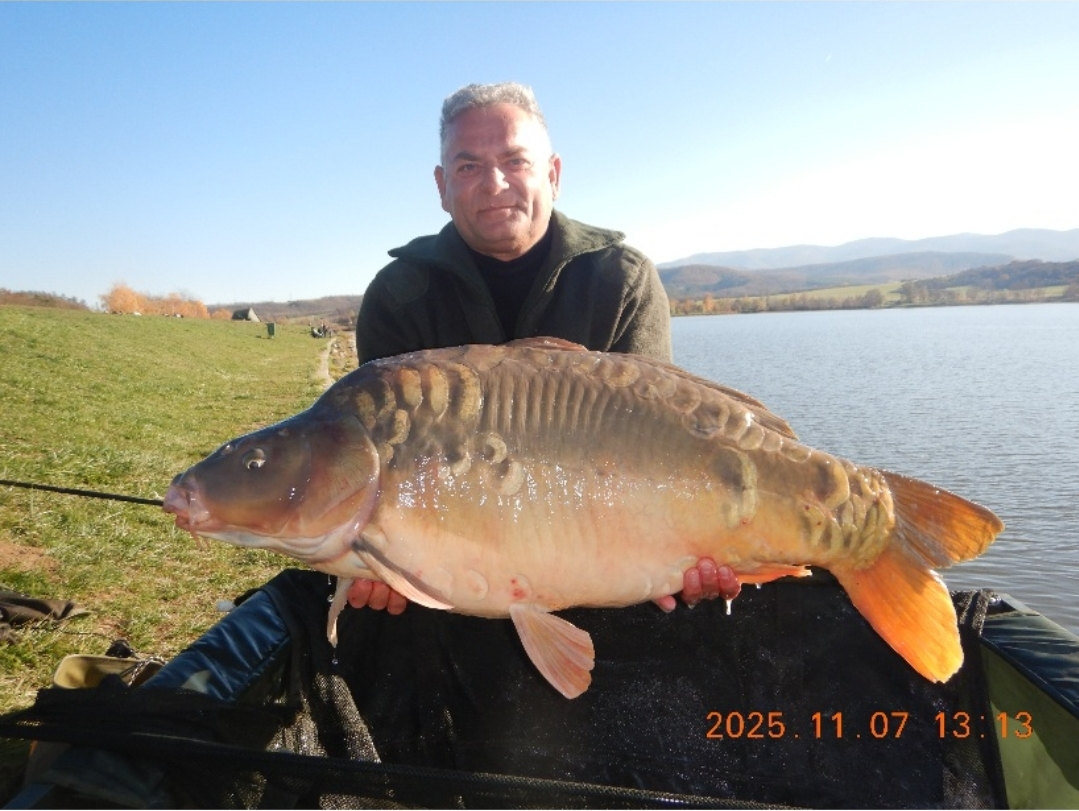 3,6 m-es 3,5 lbs bot, 0,40-es fonott zsinór, 4-es horog. Bojli csali és etetés. Szélcsend, 15 perces fárasztás partról.