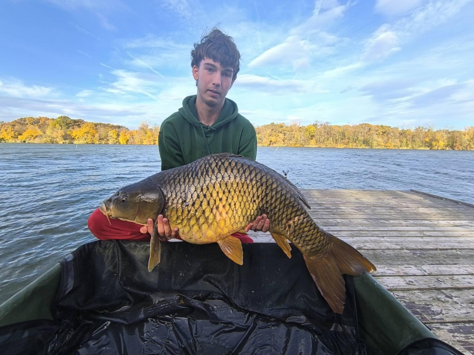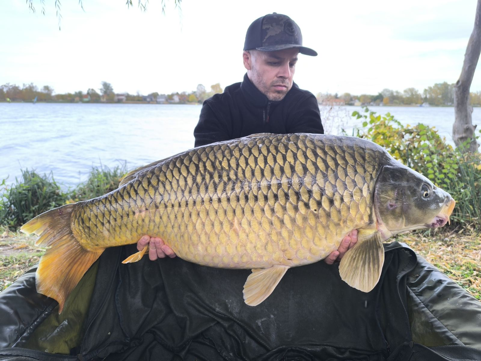 3 m-es 2,5 lbs bot, 0,35-ös monofil zsinór, 4-es horog. Bojli csali és etetés. Gyenge szél, 10 perces fárasztás csónakból.
