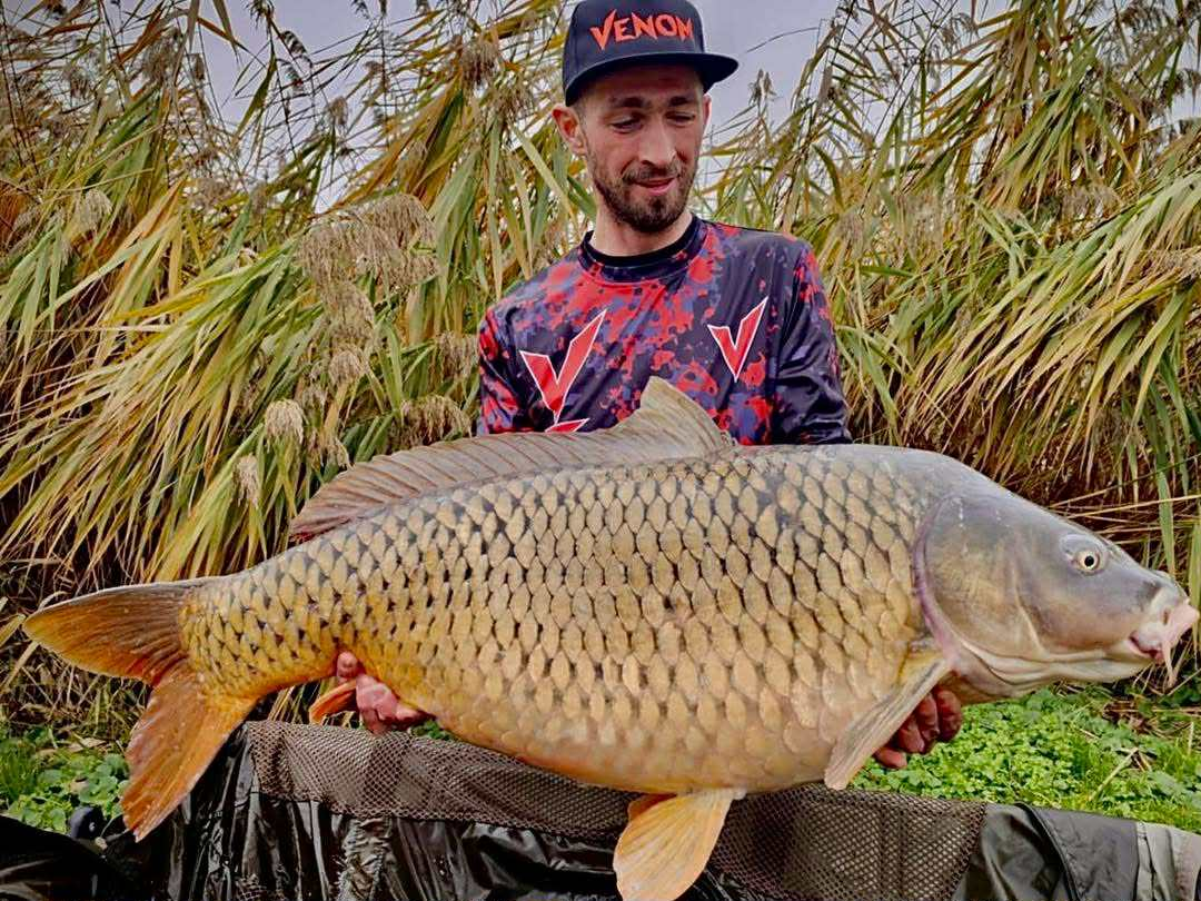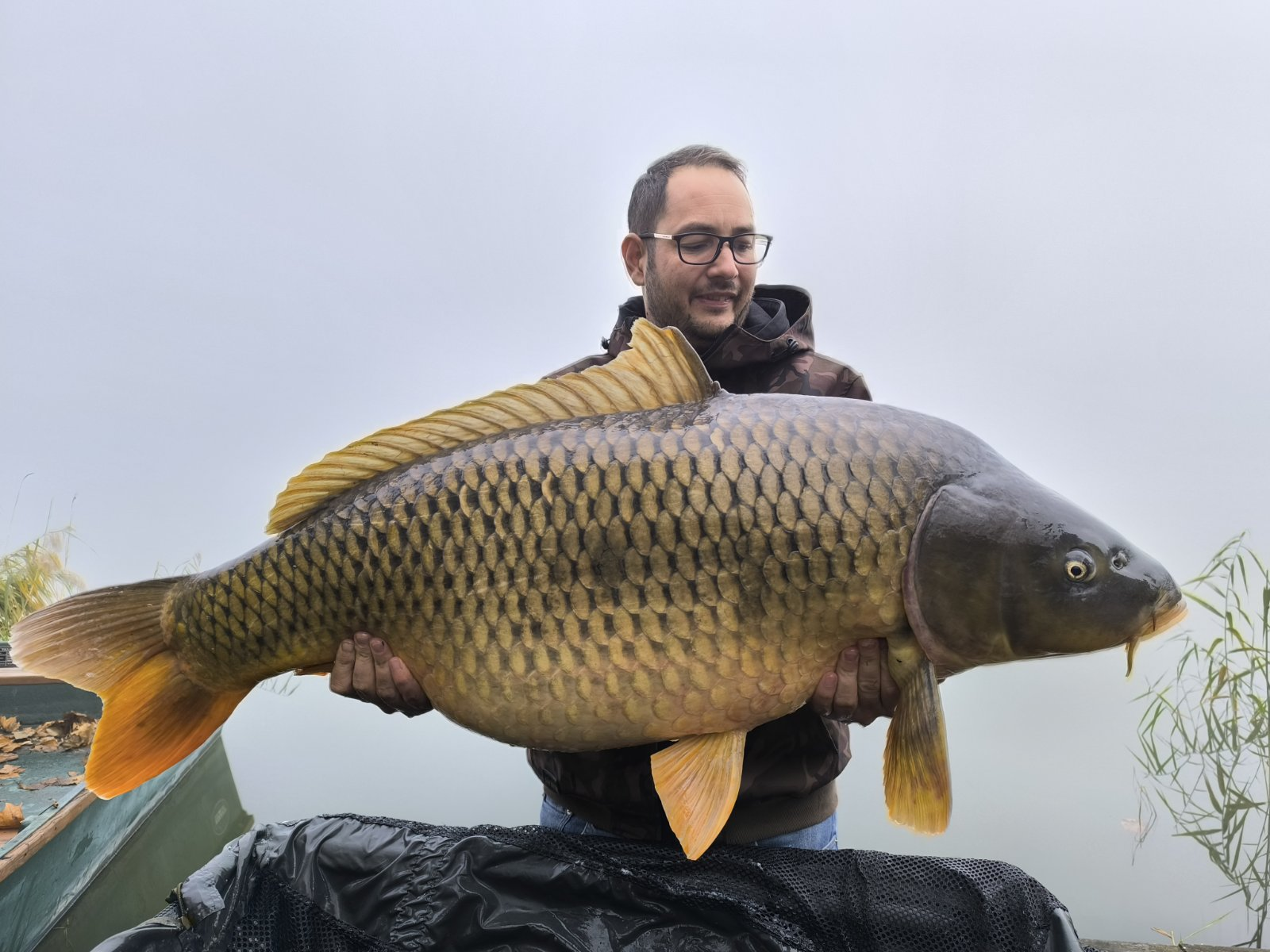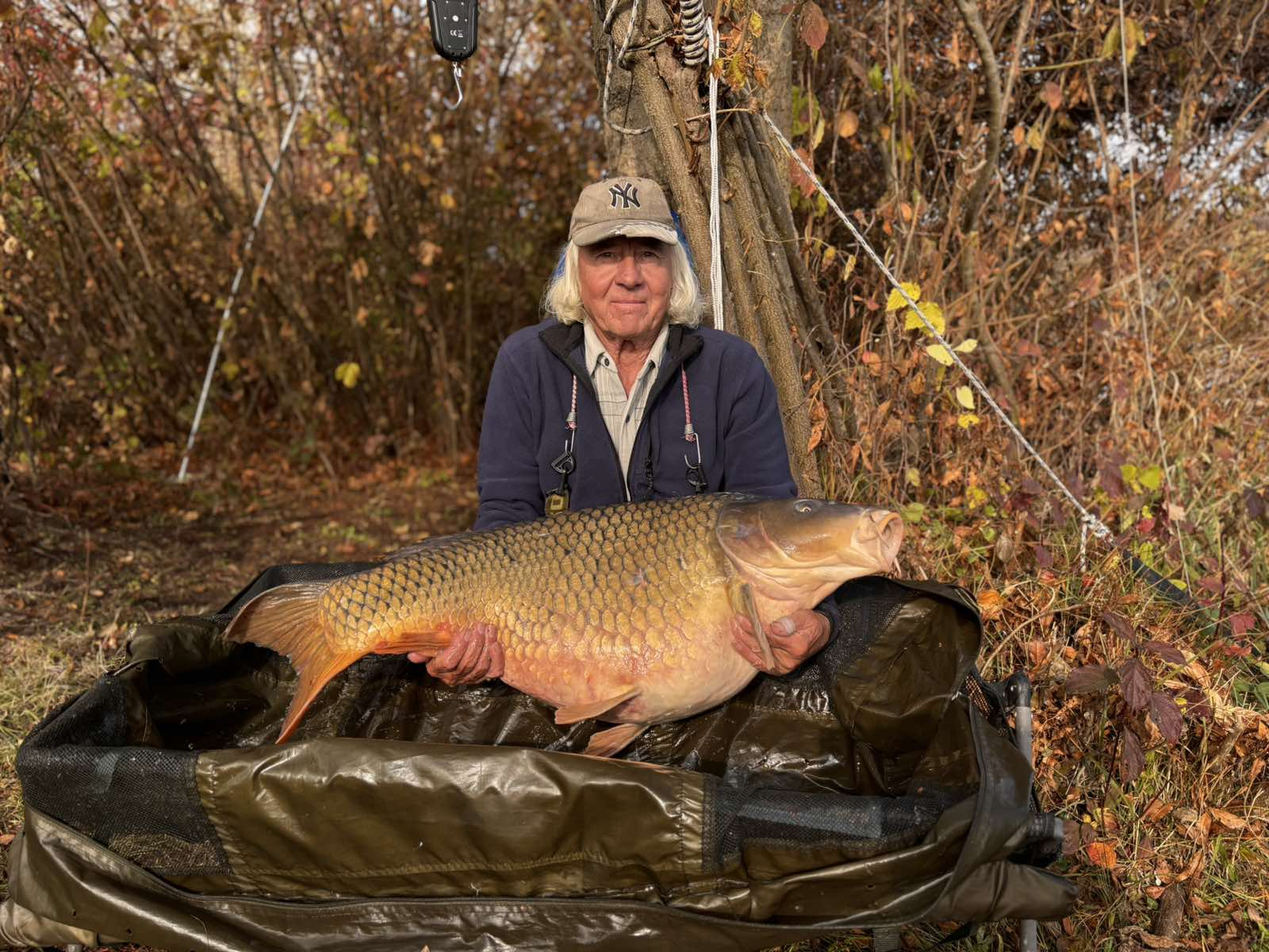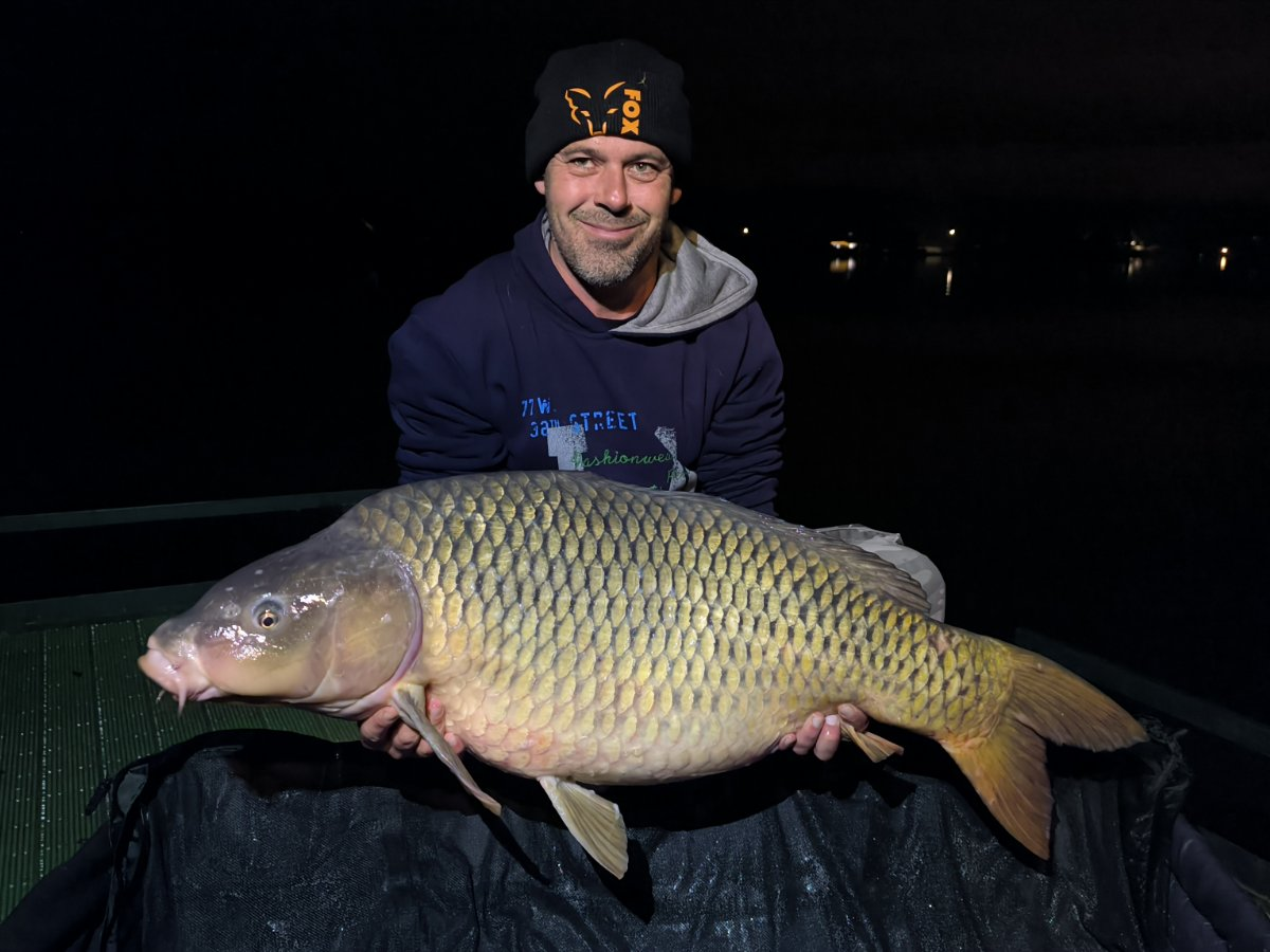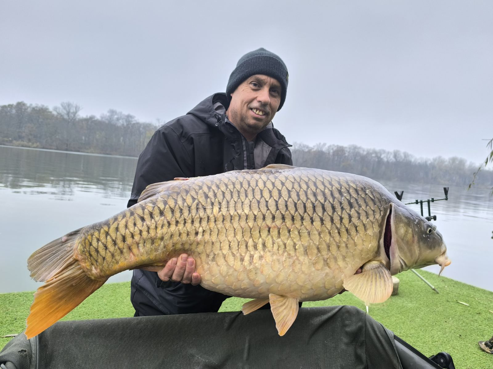 3,3 m-es 2,5 lbs bot, 0,33-as monofil zsinór, 6-os horog. Bojli csali és etetés. Ködös, enyhe idő, 20 perces fárasztás csónakból.