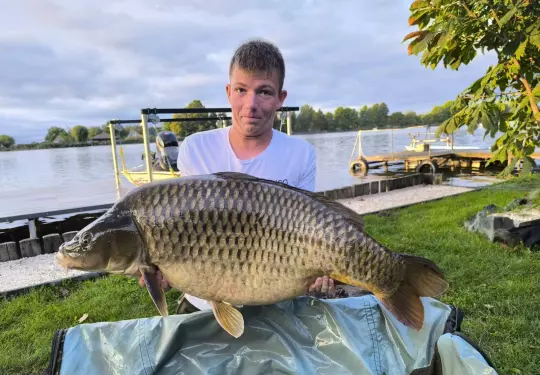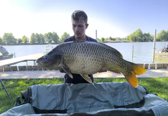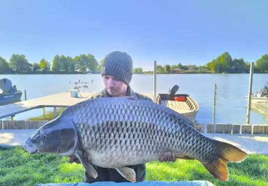 3 m-es 70 grammos feeder bot, 0,25-ös monofil zsinór, 6-os horog. Pellet és gumikukorica csali. Derűs idő, gyenge szél, 20 perces fárasztás partról.