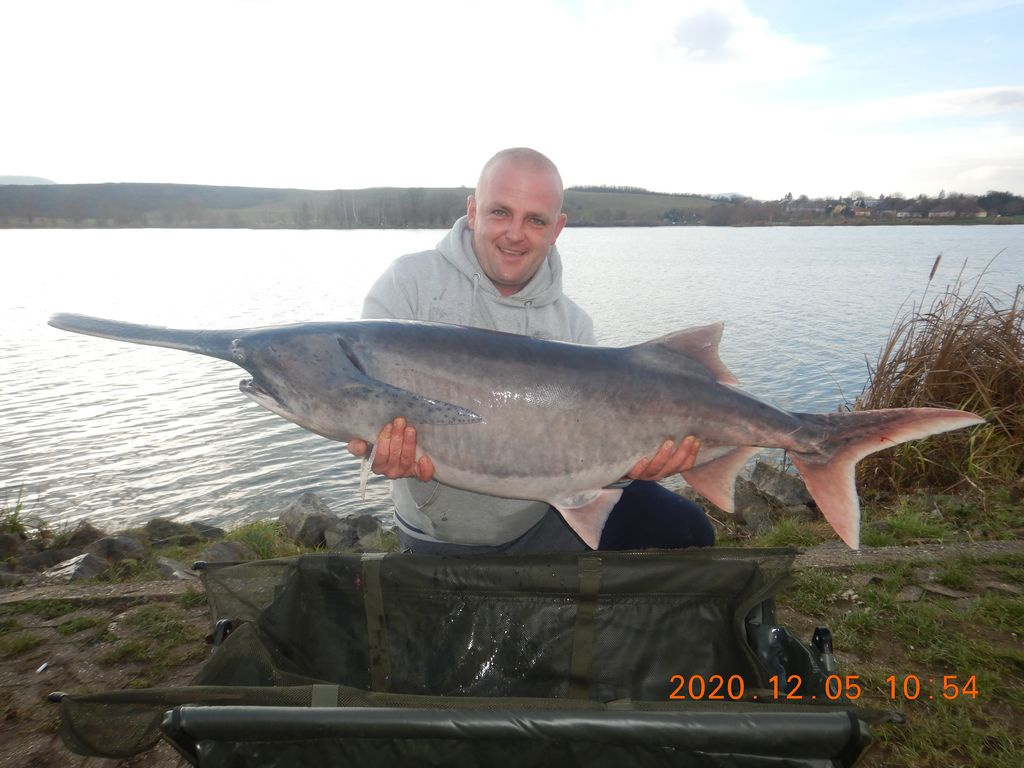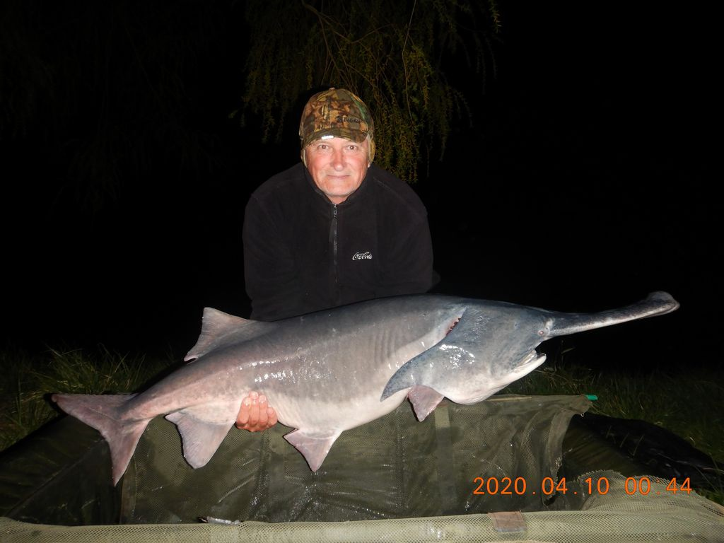 A hal kifogója a kép bal oldalán látható.