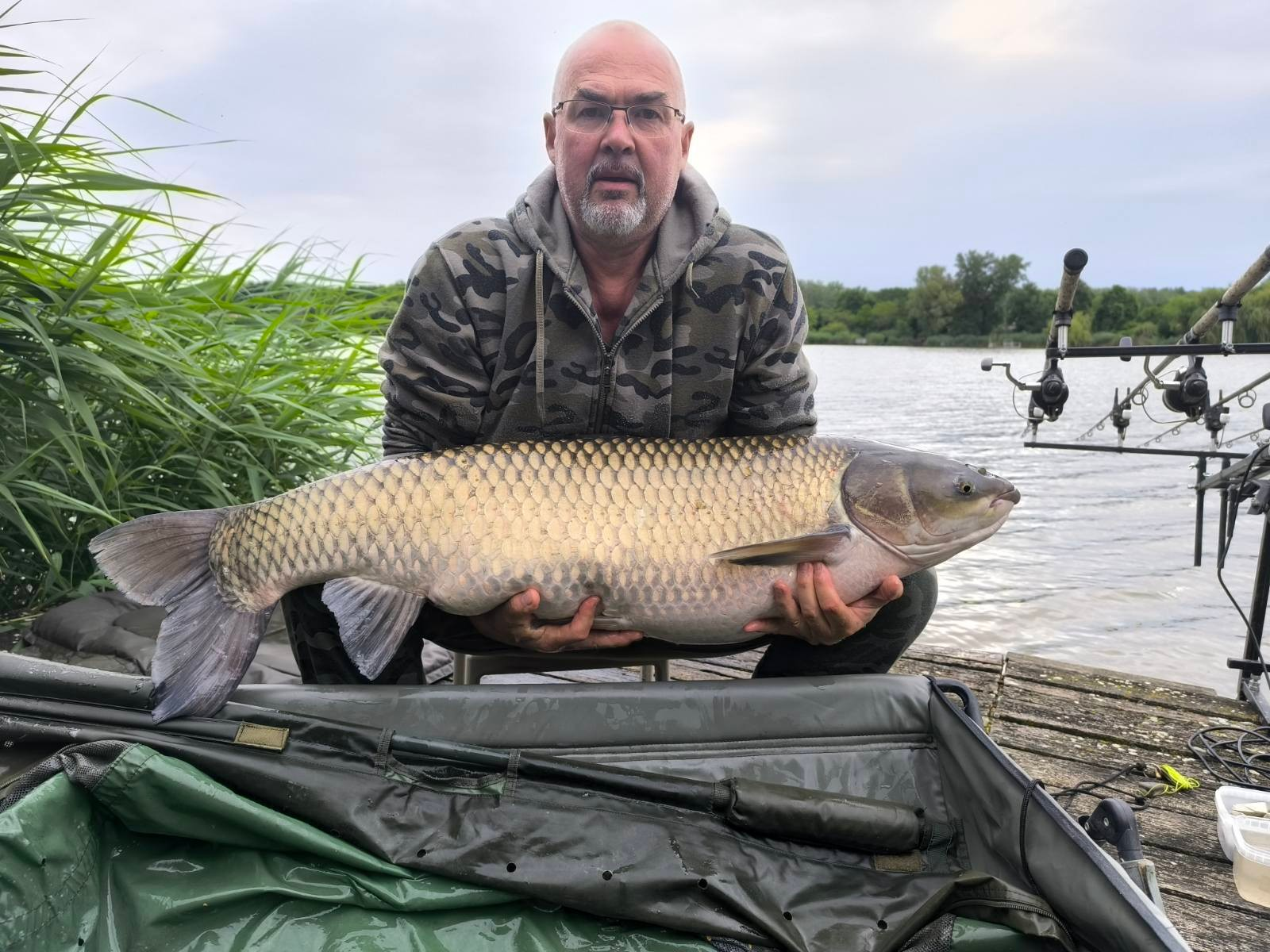 3 m-es 3,25 lbs bot, 0,32-es monofil zsinór, 4-es horog. Borús, szeles idő, 15 perces fárasztás partról.
