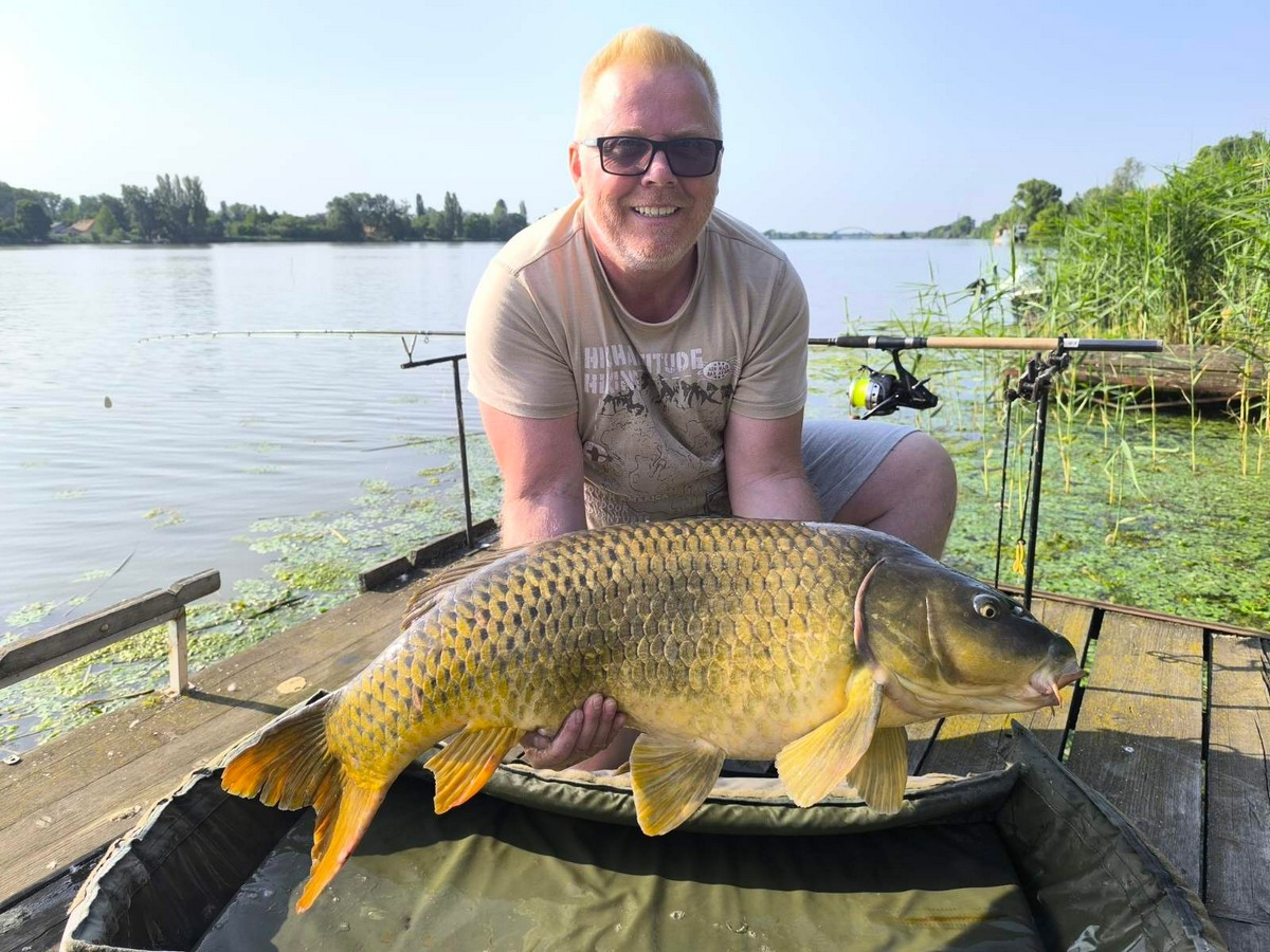 4,2 m-es 3,0 lbs bot, 0.33-as monofil zsinór, 4-es horog. Tigrismogyoró csali, etetés bojlival. Szélcsend, 20 perces fárasztás csónakból.
