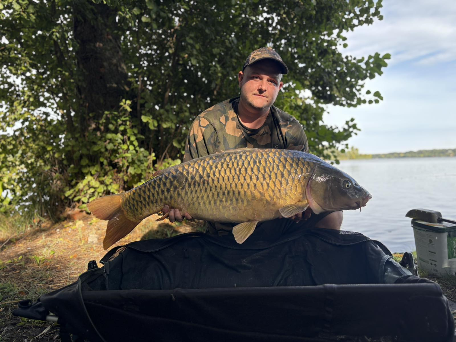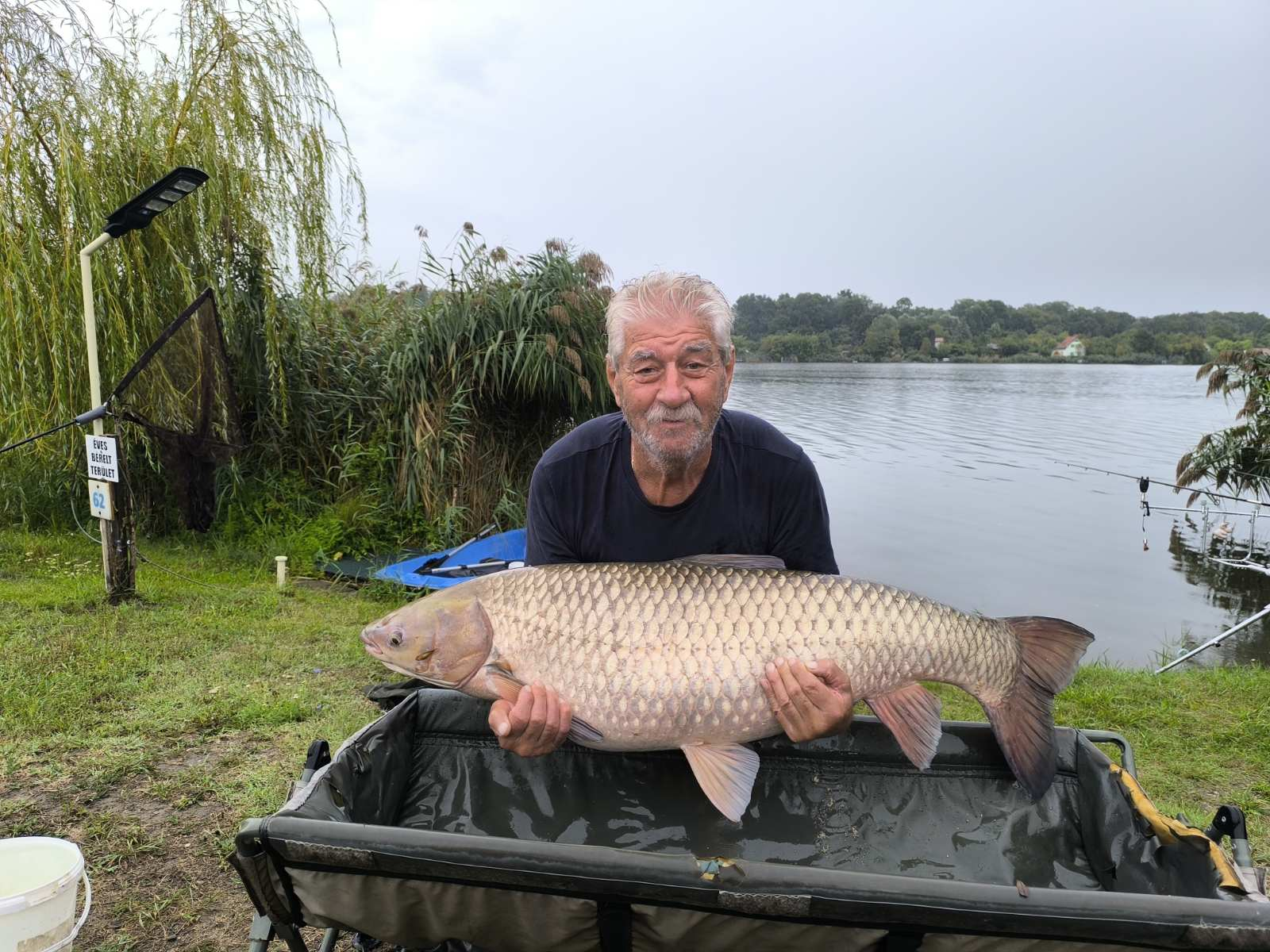3,9 m-es 3,5 lbs bot, 0,27-es monofil zsinór, 4-es horog. Kukorica csali, etetés magvakkal. Borús idő, 25 perces fárasztás partról.