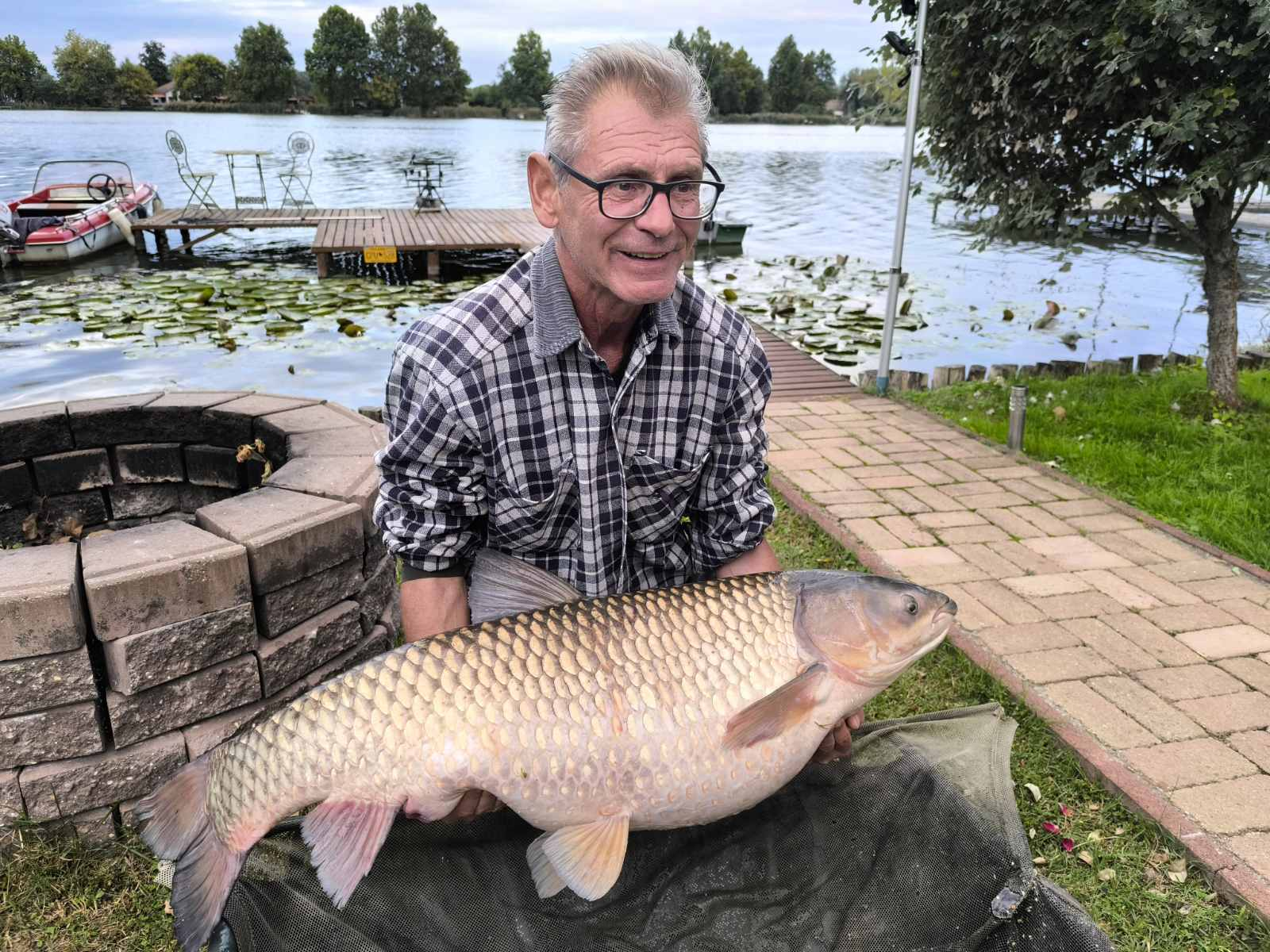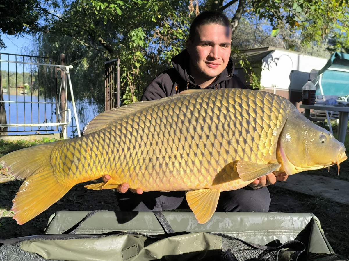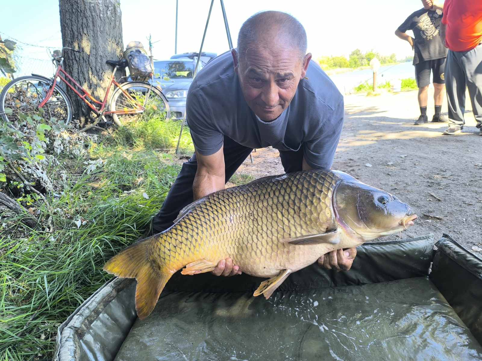 3,9 m-es 3,6 lbs bot, 0.24-es fonott zsinór, 4-es horog. Fúrt kukorica csali. Derült idő, 20 perces fárasztás partról.