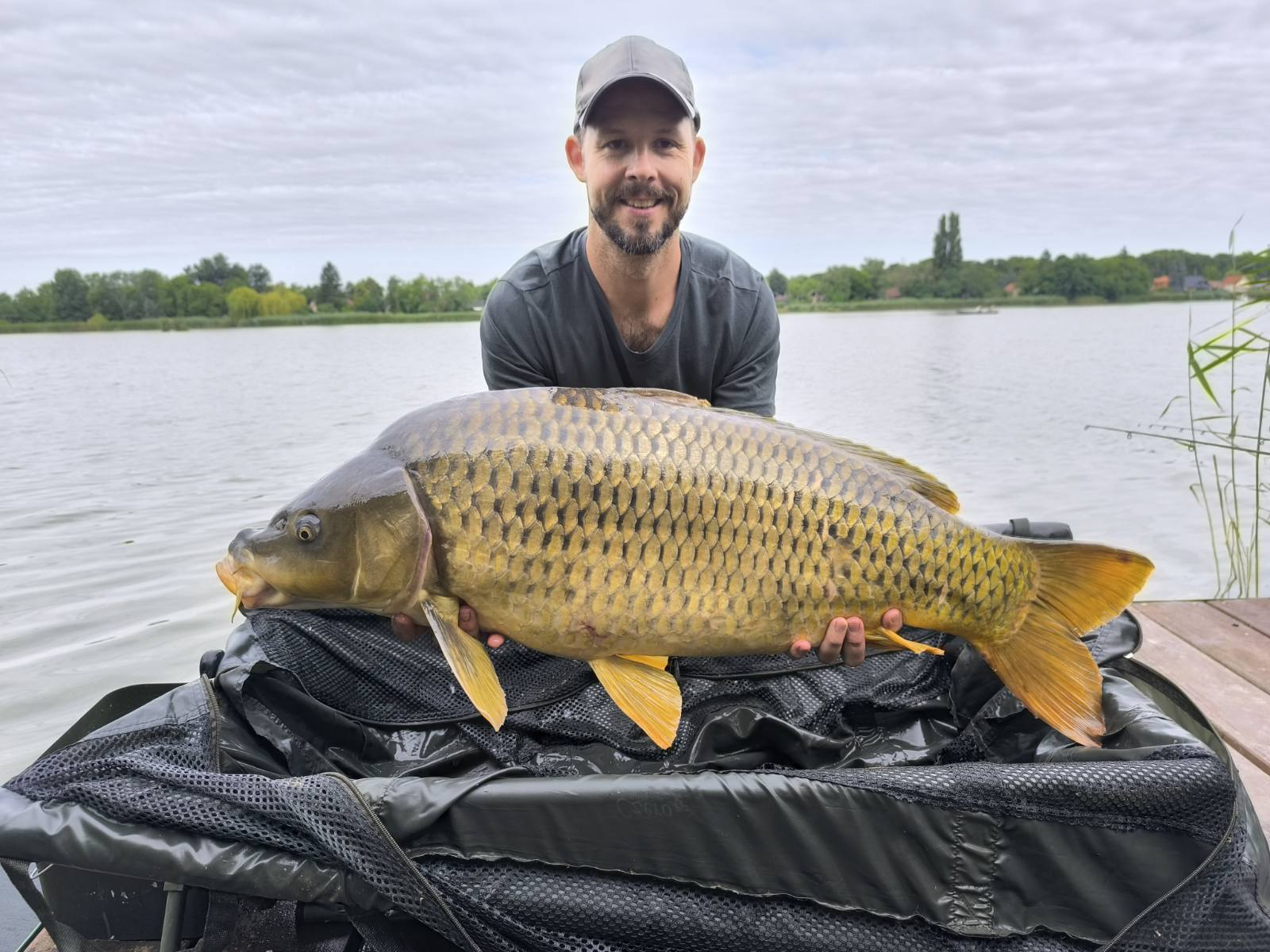 3,9 m-es 3,5 lbs bot, 0,30-as monofil zsinór, 4-es horog. Kukorica csali, etetés magvakkal. Napos idő, gyenge szél, 20 perces fárasztás partról.