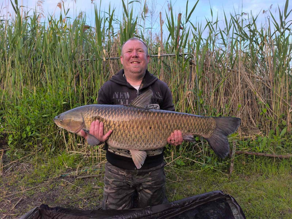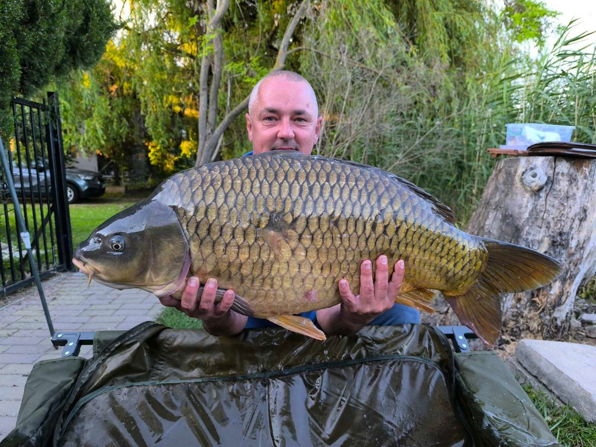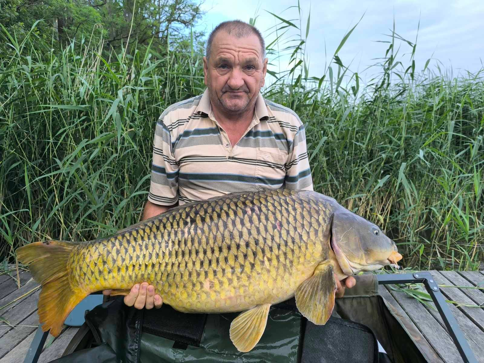3,6 m-es 3,0 lbs bot, 0,28-as monofil zsinór, 6-os horog. Kukorica és csonti csali, etetés főzött kukoricával. Borús, szeles idő, 10 perces fárasztás partról.