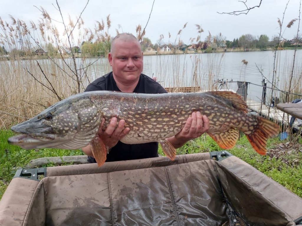 A csuka "letalpalt" úszós csukázó szereléken felkínált arasznyi küszt vett fel. Az izgalmas fárasztás 10 percig tartott, a halat a gyors fényképezés után visszaengedtem.
