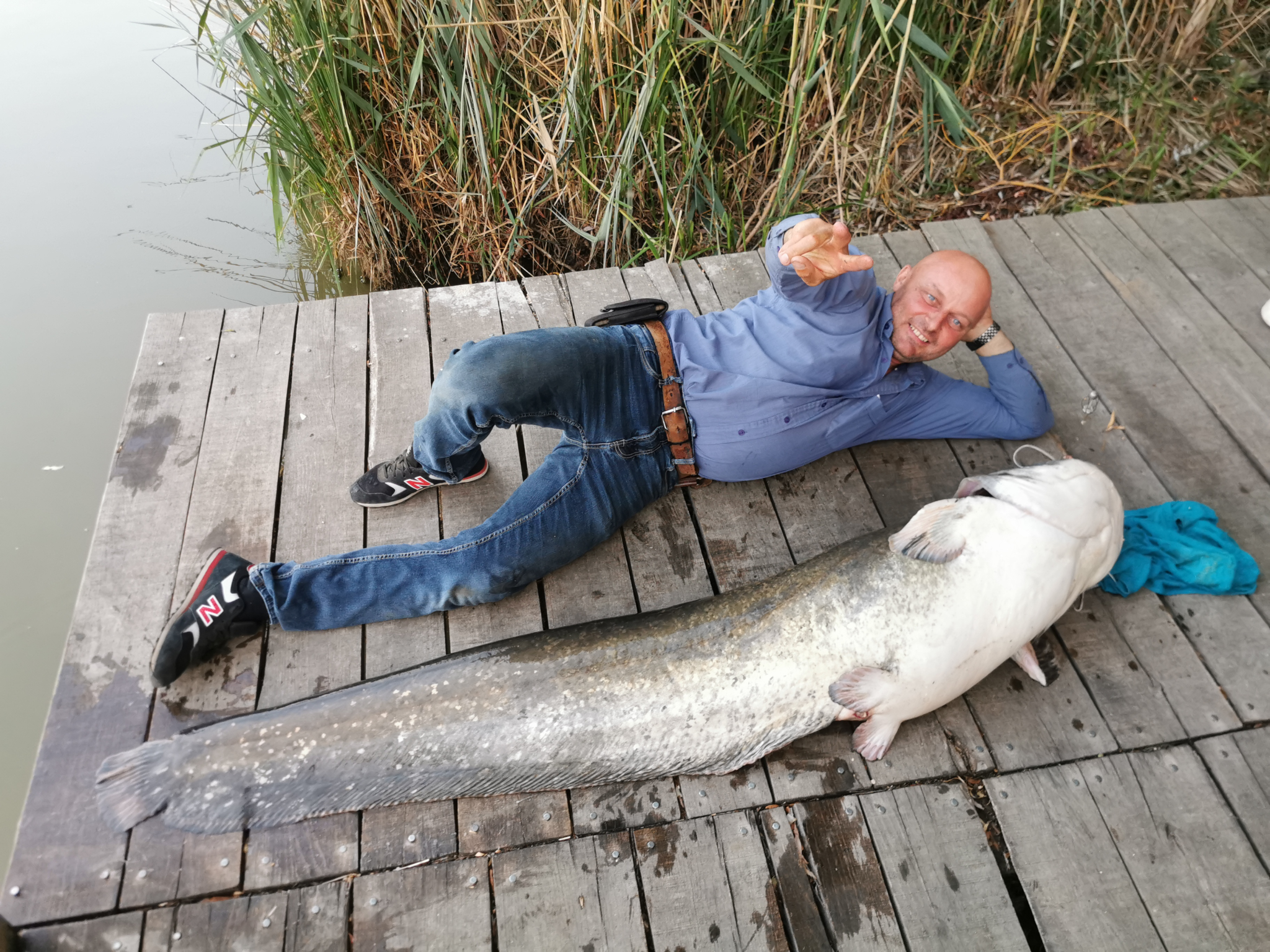 2,1 m-es 250-500 g-os harcsázó bot, 0.60-as fonott zsinór, stupek, élő kárász csali. Derült idő, szélcsend, 15 perces fárasztás.