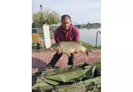 3,6 m-es 2,75 lbs bot, 0.28-as monofil zsinór, 6-os horog. Gumikukorica csali, etetés kukoricadarával. Borult idő, szélcsend, 10 perces fárasztás.