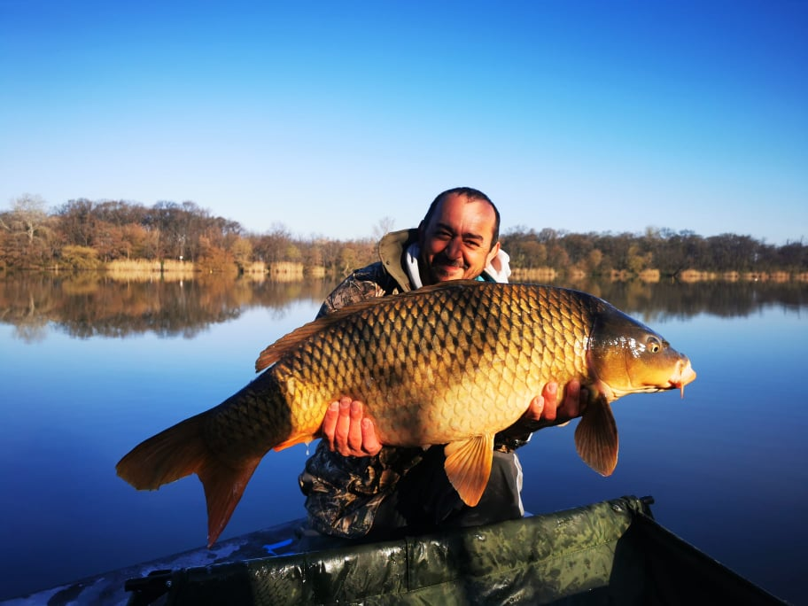 3,6 m-es Daiwa bot, 0.35-ös monofil zsinór, 8-as horog, chilis bojli csali. -2 fok, szélcsend, 20 perces fárasztás.