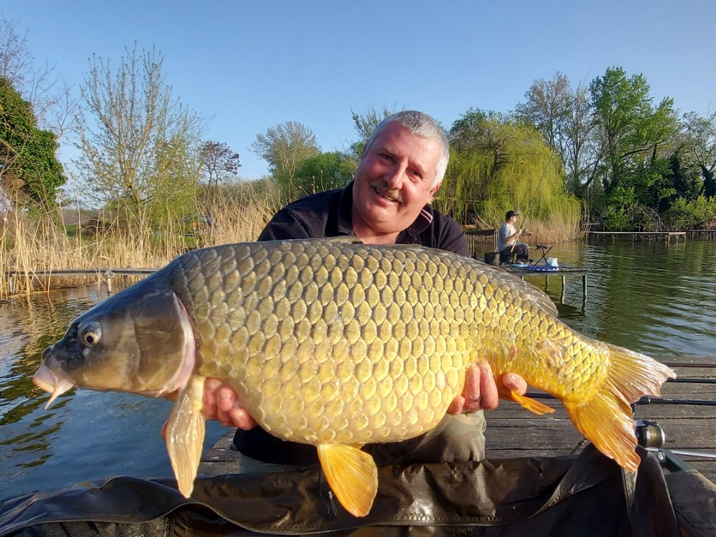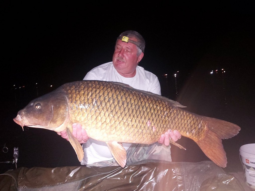 3,6 m-es 3,0 lbs bot, 0.30-as monofil zsinór, 4-es horog. Bojli csali és etetés. Borús, szeles idő, 10 perces fárasztás partról.