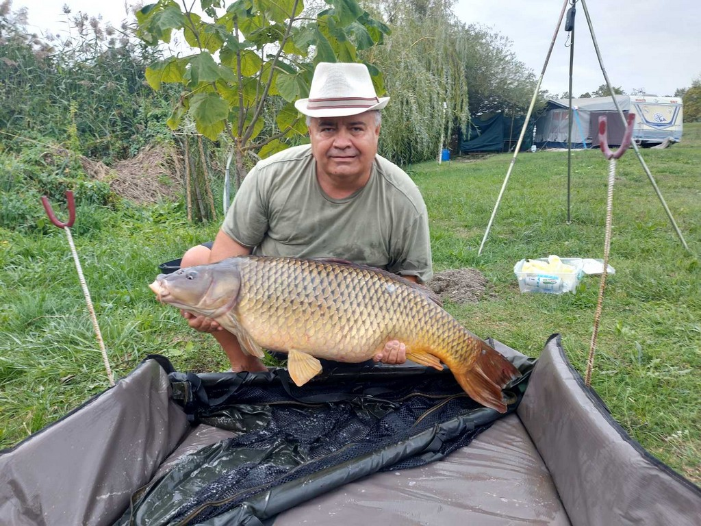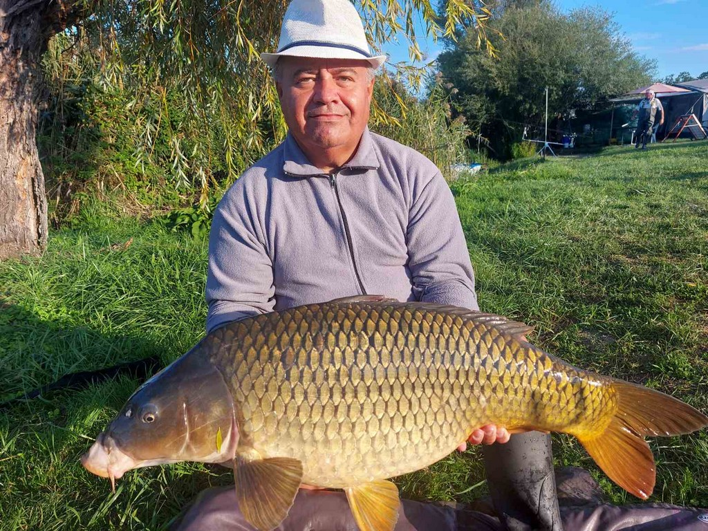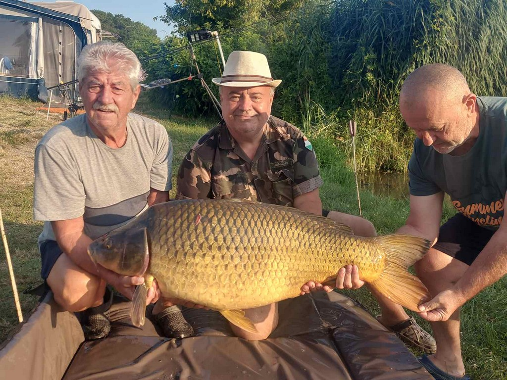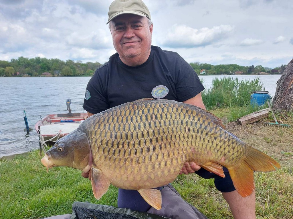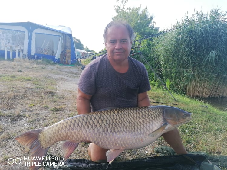 3,6 m-es 3,0 lbs bot, 0,35-ös monofil zsinór, 2-es horog. Erjesztett kukorica csali és etetés. Napos idő, 10 perces fárasztás csónakból.