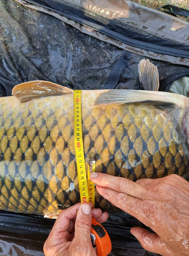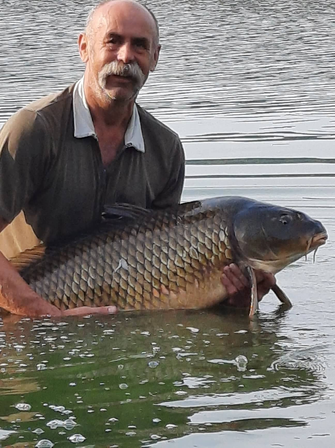 ismeretlen méretekkel rendelkező hal volt a horgon. Azonnal csónakba ültünk és próbáltuk vele felvenni a harcot. Elementáris erővel bírt, a csónakunk súlyát szinte meg sem érezte, kis túlzással az egész víztározón körbe vontatott minket. Nagyjából 30 perces küzdelem után sikerült a szákba terelni ezt a hatalmas, mint később már kiderült 18.9 kg-os 110 cm hosszú (Legnagyobb kerület 73 cm) igazi vad pontyot, ami láthatóan gyönyörű, egészséges volt és valószínűleg még soha, senkinek nem akadt horogra.