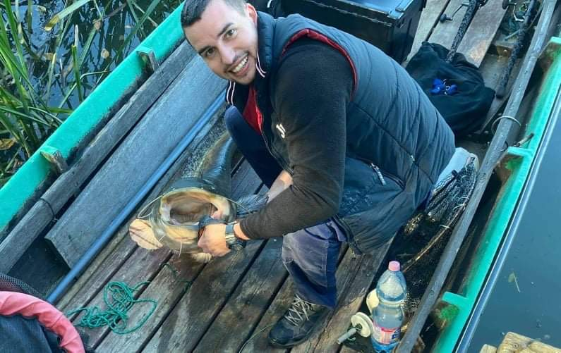 Vertikális módszerrel (fireball) élő halra (tenyeres bodorka) csábult el, ez a gyönyörű Tiszai harcsa!