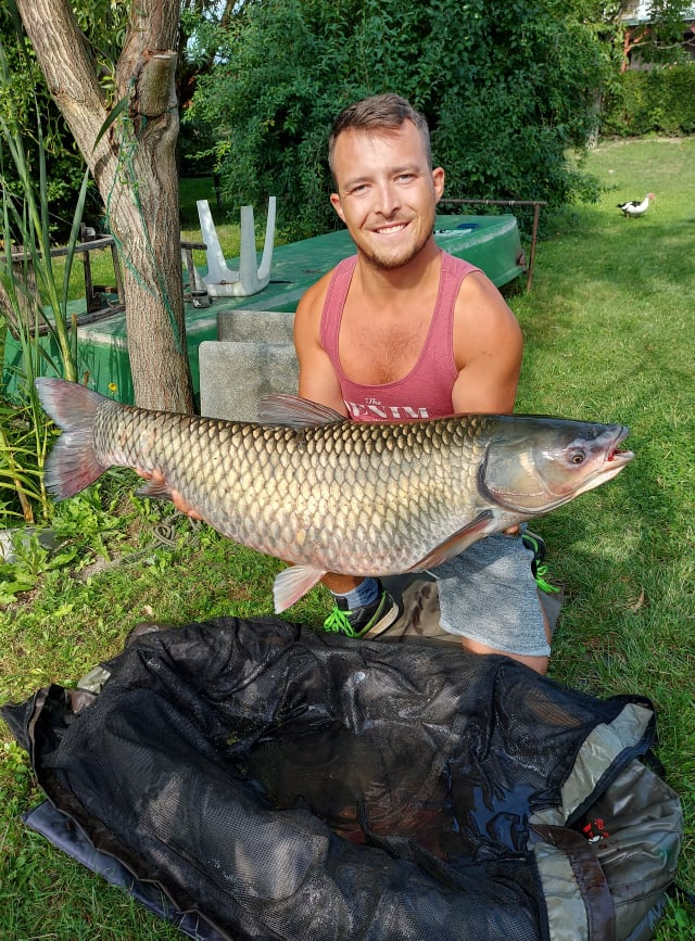 3,6 m-es 3,5 lbs bot, 0.35-ös monofil zsinór, 4-es horog. Wafter csali, etetés bojlival és tigrismogyoróval. Enyhe szél, 15 perces fárasztás partról.