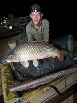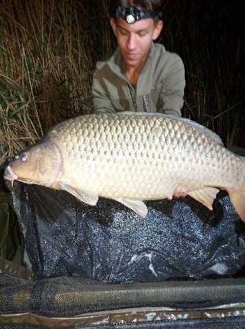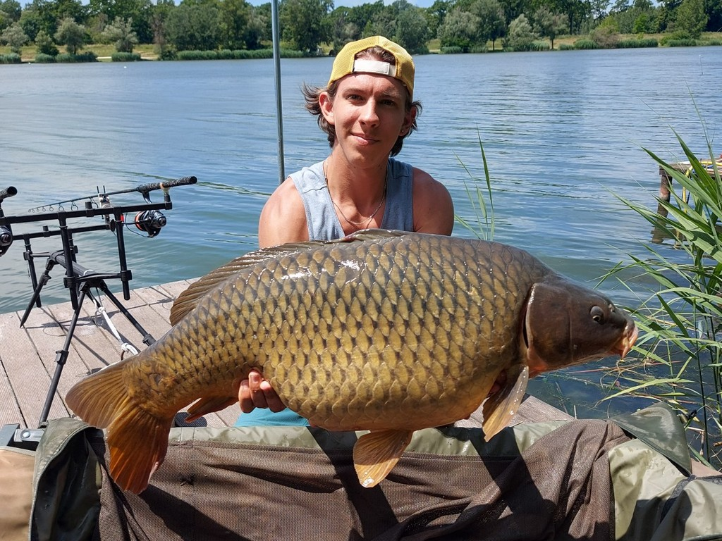 2,5 lbs bot, 0.25-ös monofil zsinór, 4-es horog. Bojli csali, etetés bojlival és kukoricával. Gyenge szél, 10 perces fárasztás.