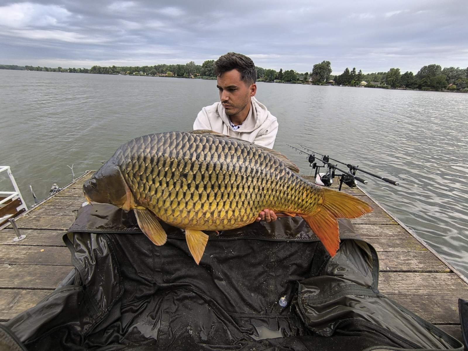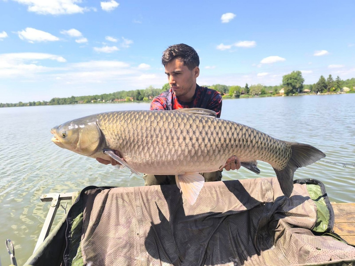 3,6 m-es 2,75 lbs bot, 0,35-ös monofil zsinór, 4-es horog. Borult, szeles idő, 5 perces fárasztás partról.