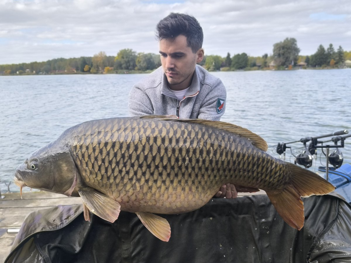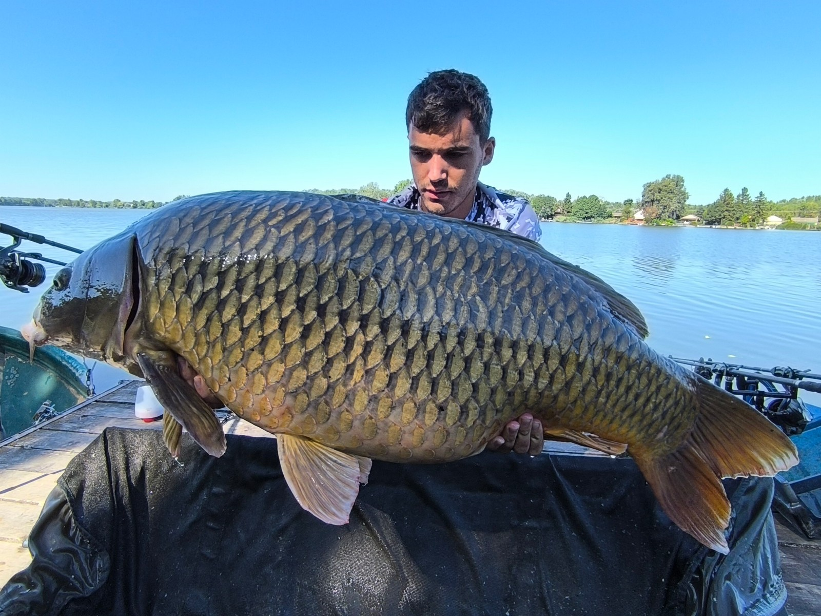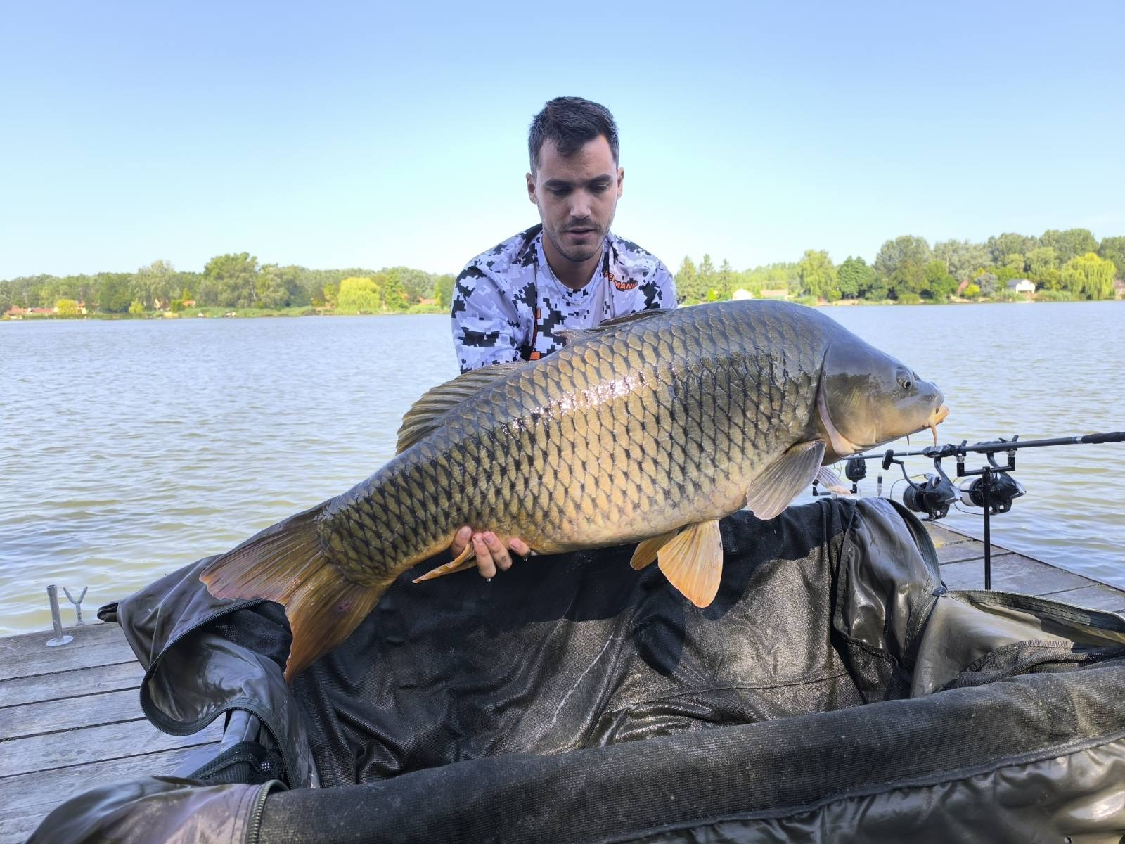3,6 m-es 2,75 lbs bot, 0,35-ös monofil zsinór, 4-es horog. Bojli csali és etetés. Derült idő, szélcsend, kb. 15 perces fárasztás partról.