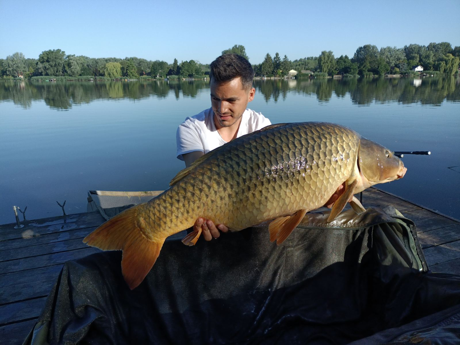 3,6 m-es 2,75 lbs bot, 0.35-ös monofil zsinór, 4-es horog. Derült idő, szélcsend, 10 perces fárasztás partról.
