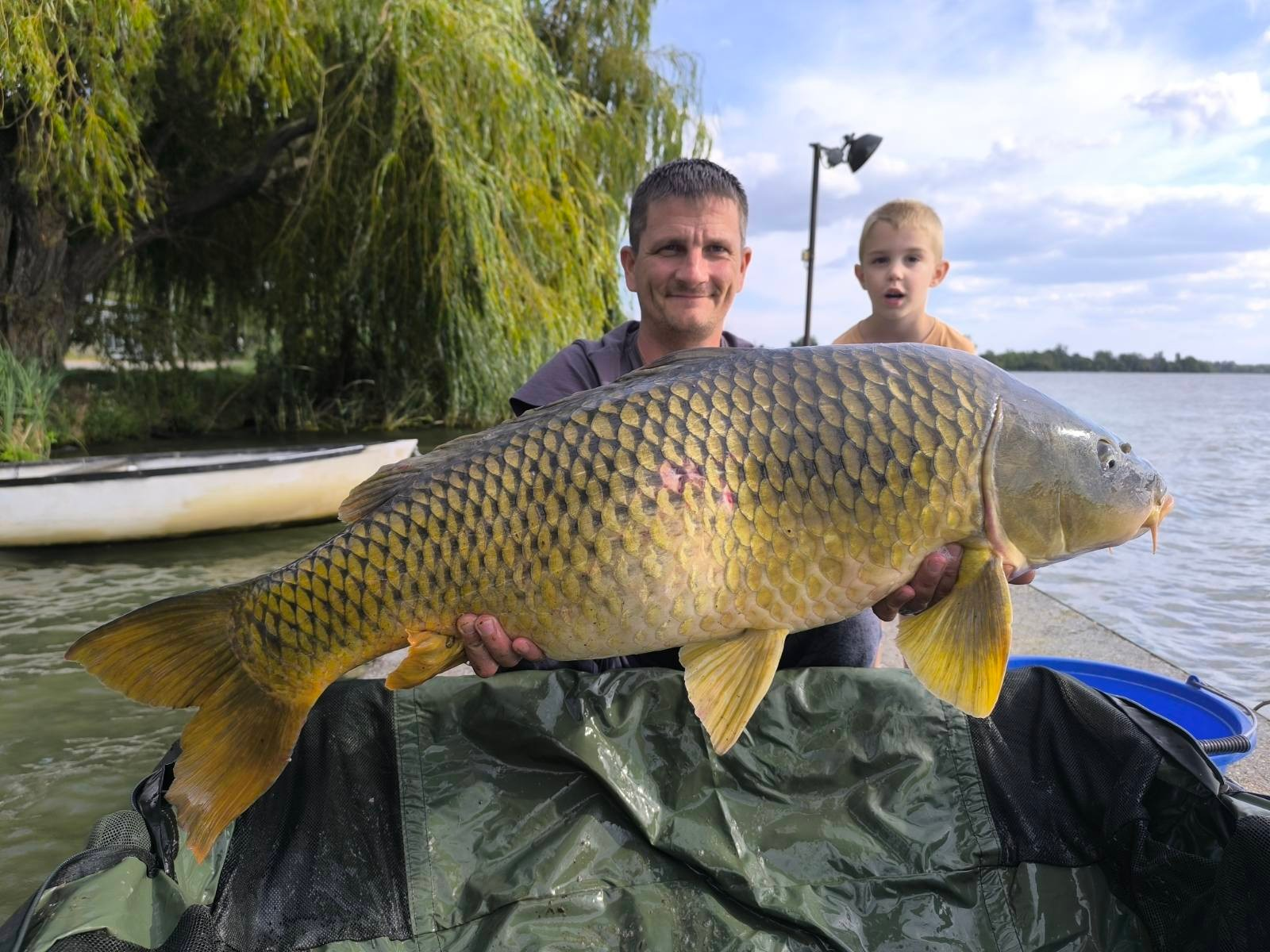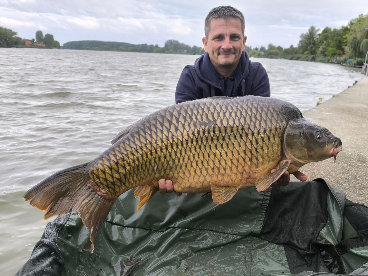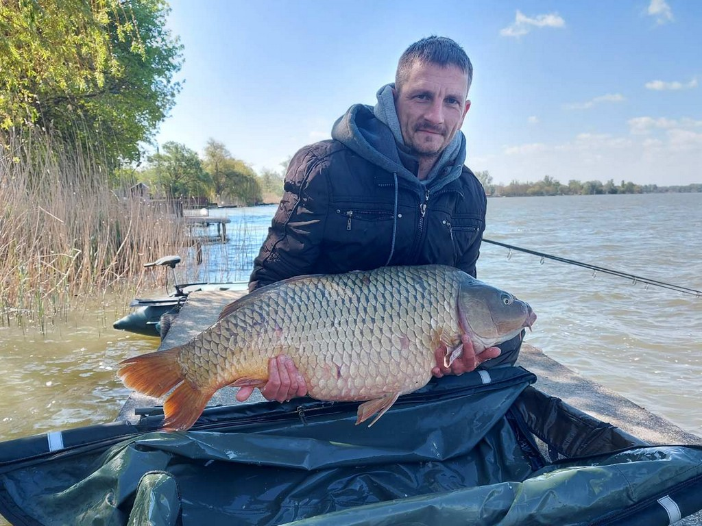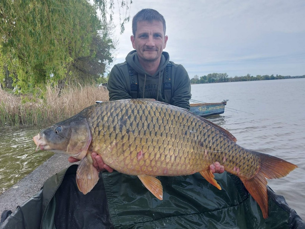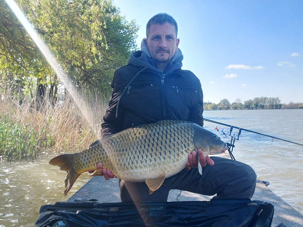 3 m-es 2,0 lbs bot, 0,30-as monofil zsinór, 4-es horog. Bojli csali és etetés. Napos, szeles idő, 20 perces fárasztás csónakból.