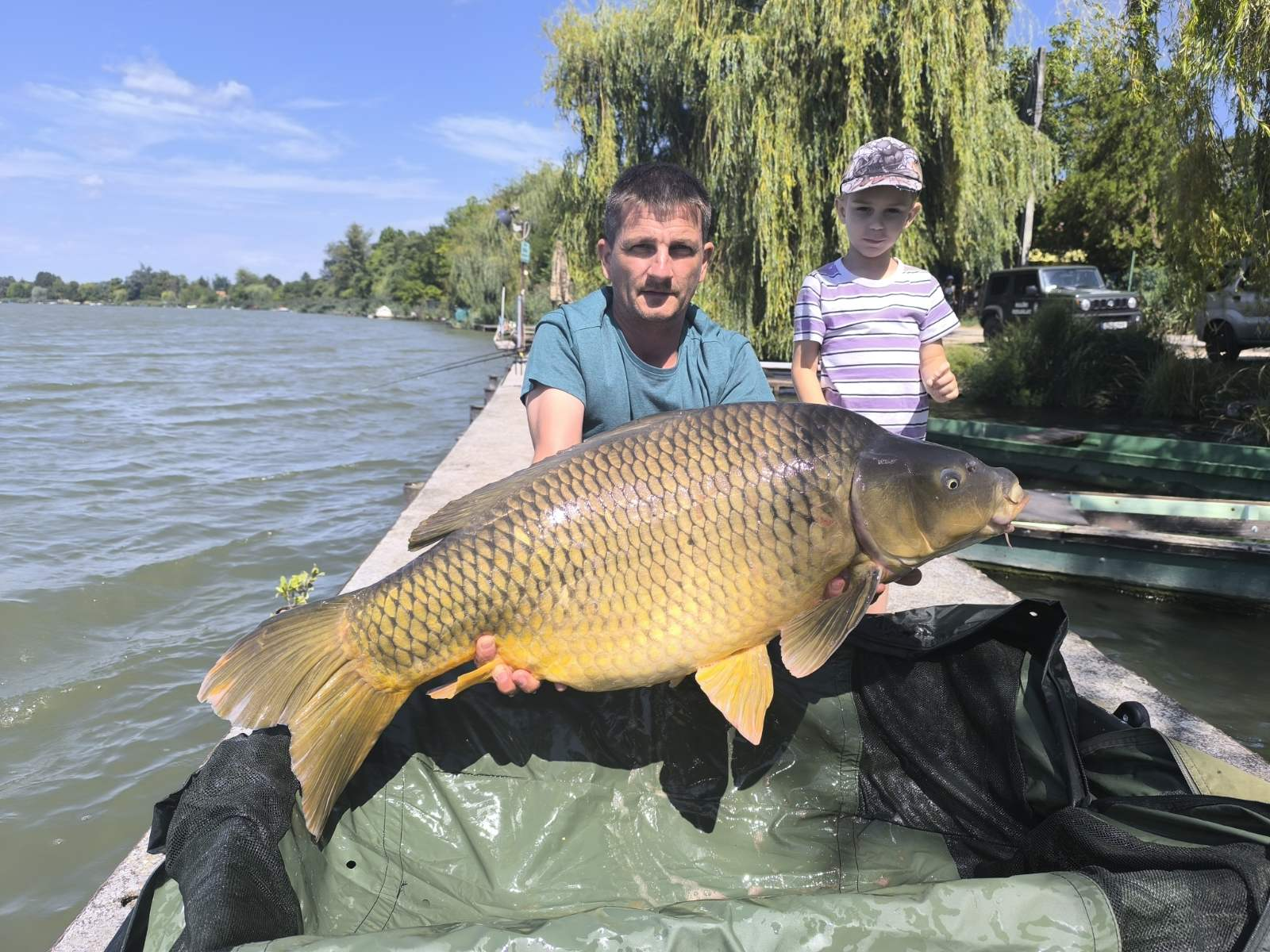 3 m-es 2,0 lbs bot, 0,30-as monofil zsinór, 4-es horog. Bojli csali és etetés. Derült idő, szélcsend, kb. 15 perces fárasztás csónakból.