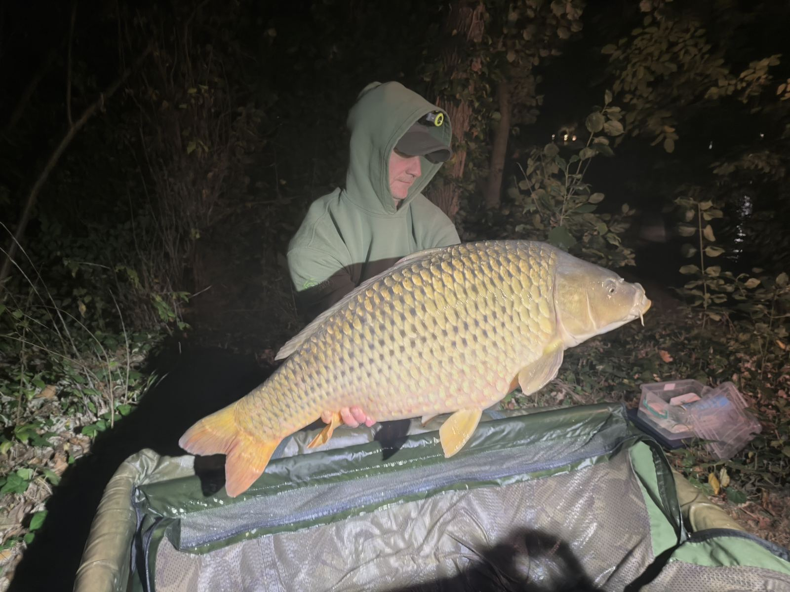 3 m-es 3,0 lbs bot, 0,35-ös monofil zsinór, 4-es horog. Bojli csali és etetés. Gyenge szél, 10 perces fárasztás partról.