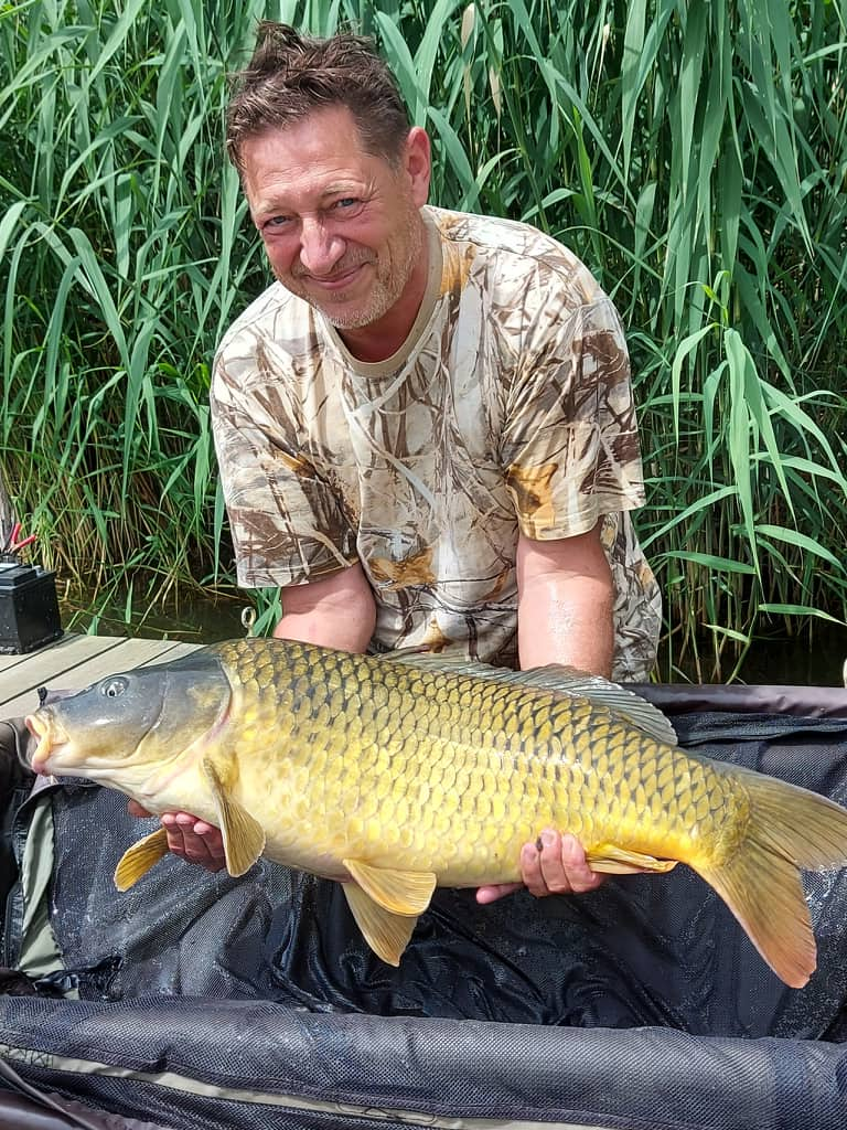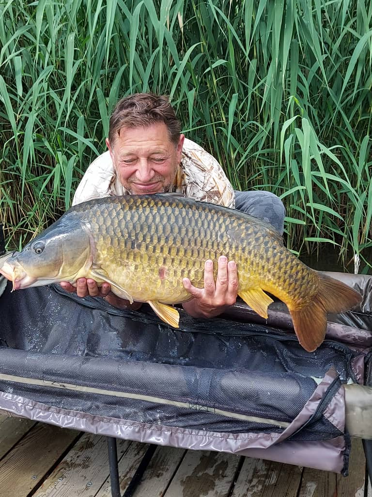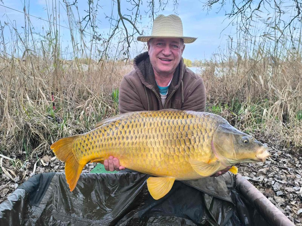 3,6 m-es 3,0 lbs bot, 0.40-es monofil zsinór, 4-es horog. Bojli csali és etetés. Fehős idő, gyenge szél, kb. 10 perces fárasztás csónakból.