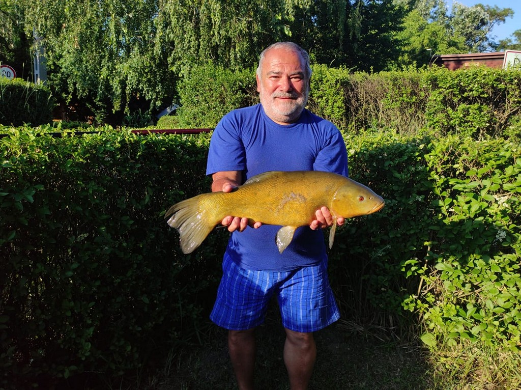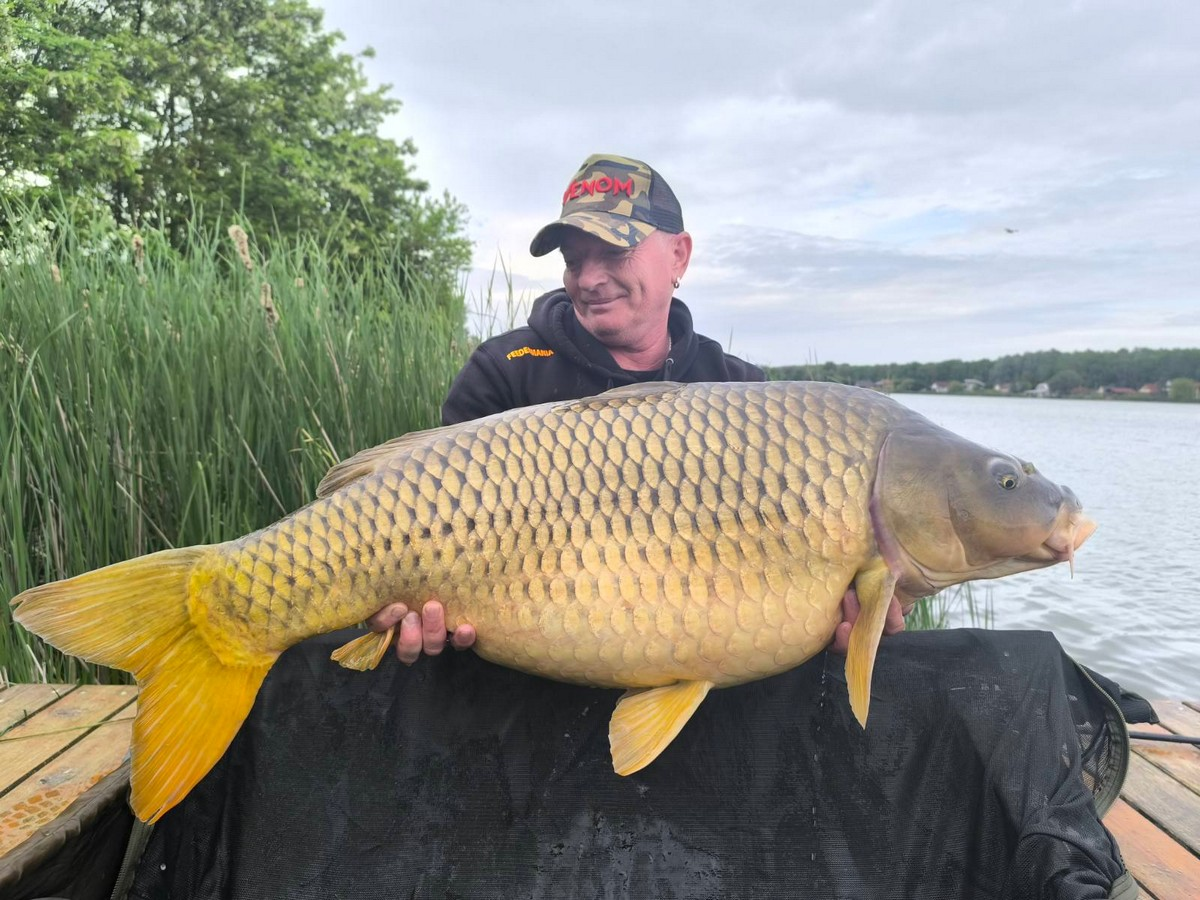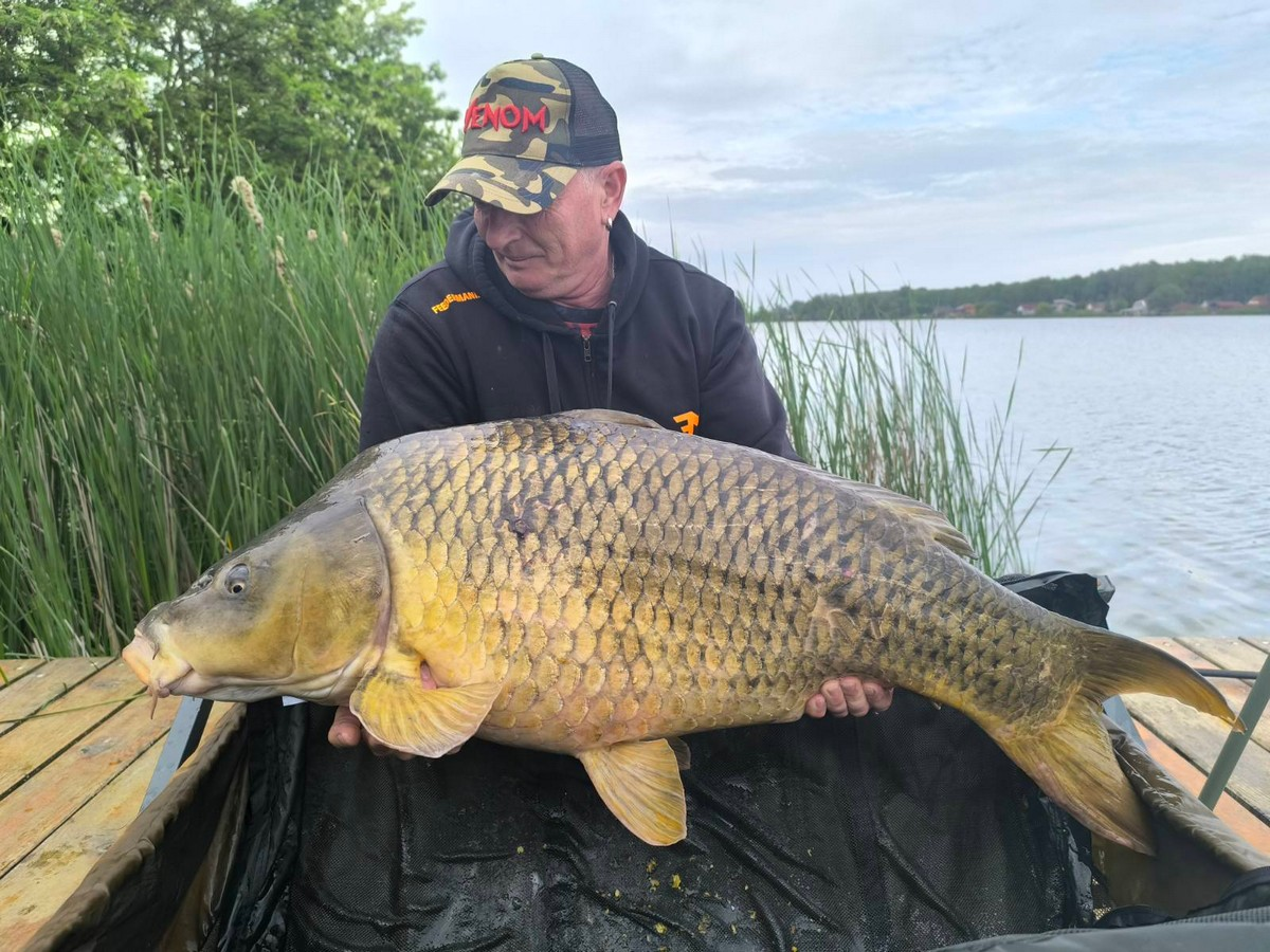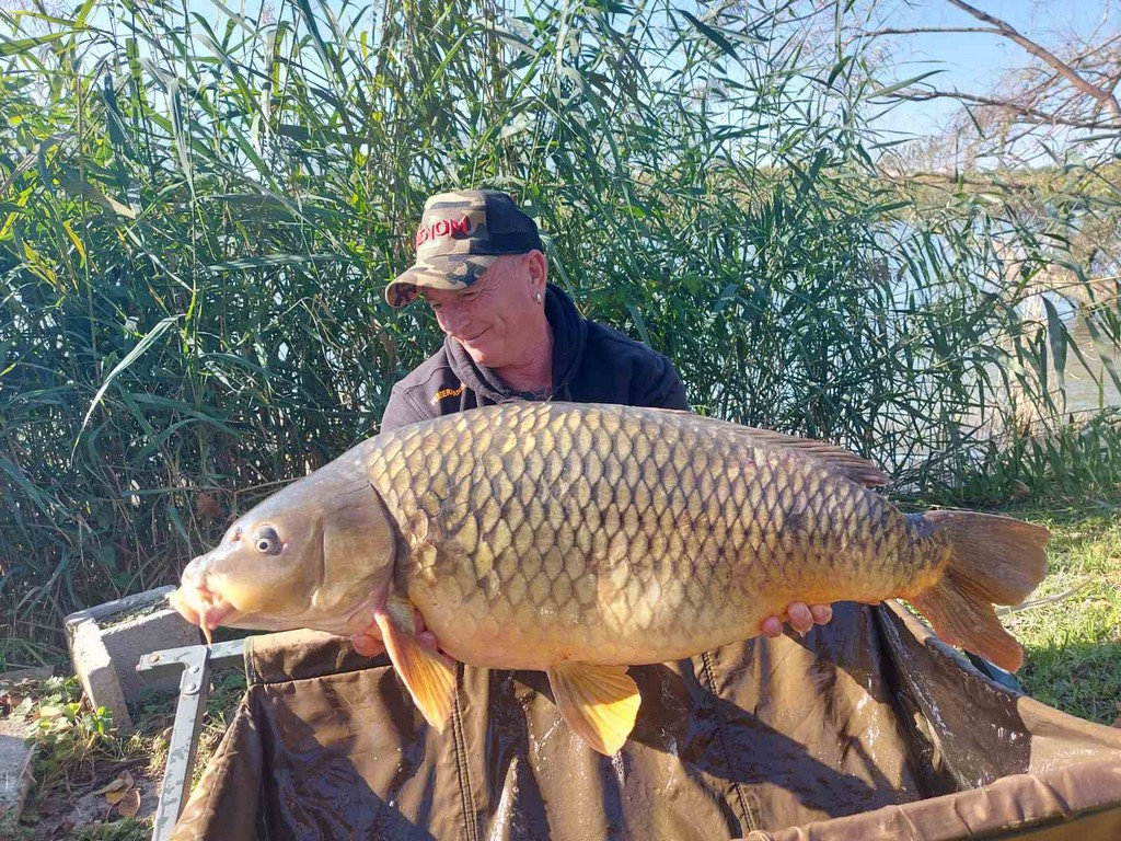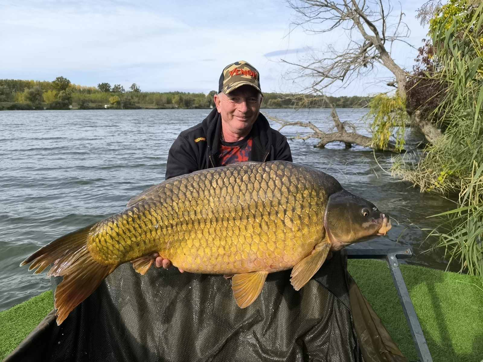 3,6 m-es 3,0 lbs bot, 0,35-ös monofil zsinór, 4-es horog. Bojli csali és etetés. Derült idő, szélcsend, kb. 25 perces fárasztás csónakból.