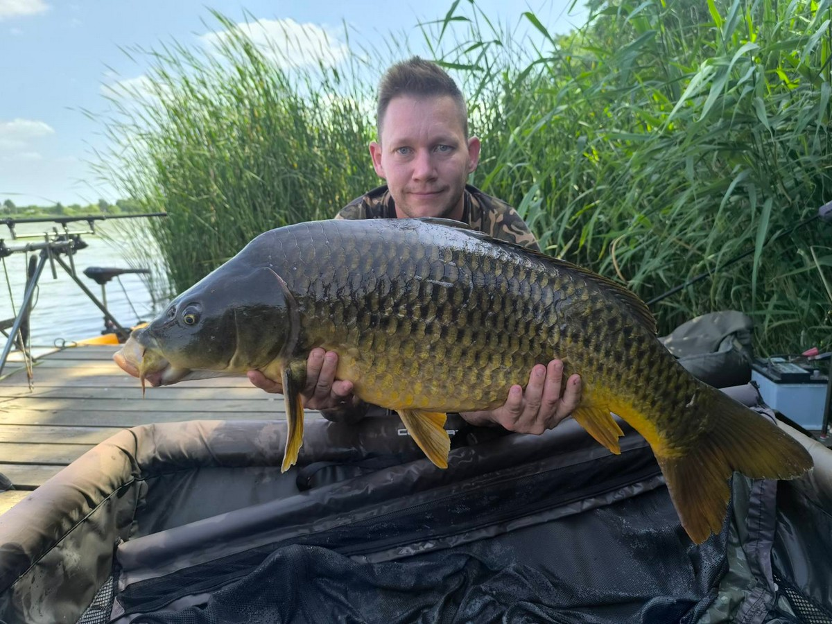 3,6 m-es, 3 lbs bojlis bot, 0.30-as monofil zsinór, 2-es horog, tigrismogyoró csali. Derült idő, szélcsend.