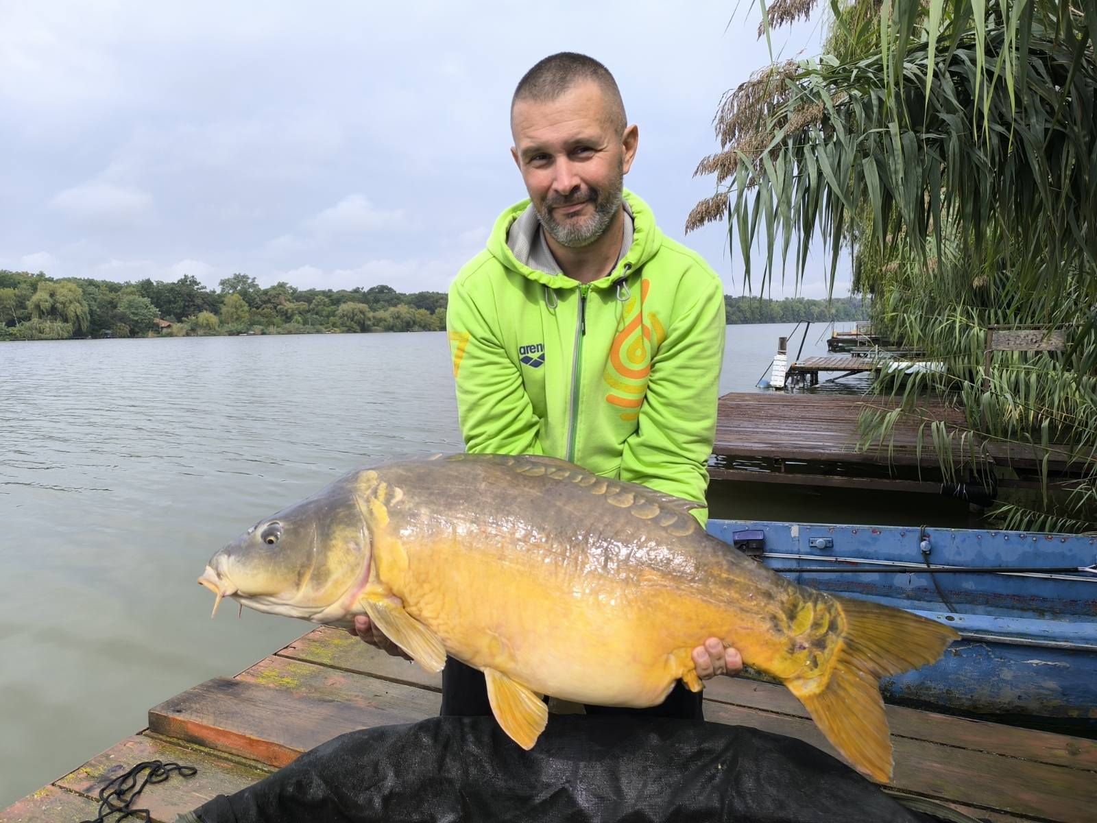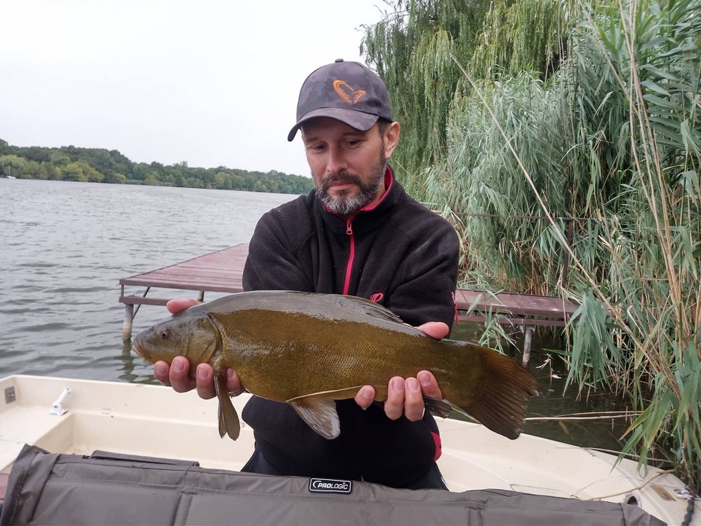 3,6 m-es 3,0 lbs bot, 0,35-ös monofil zsinór, 4-es horog. Bojli csali és etetés. Esős idő, gyenge szél, 10 perces fárasztás csónakból.