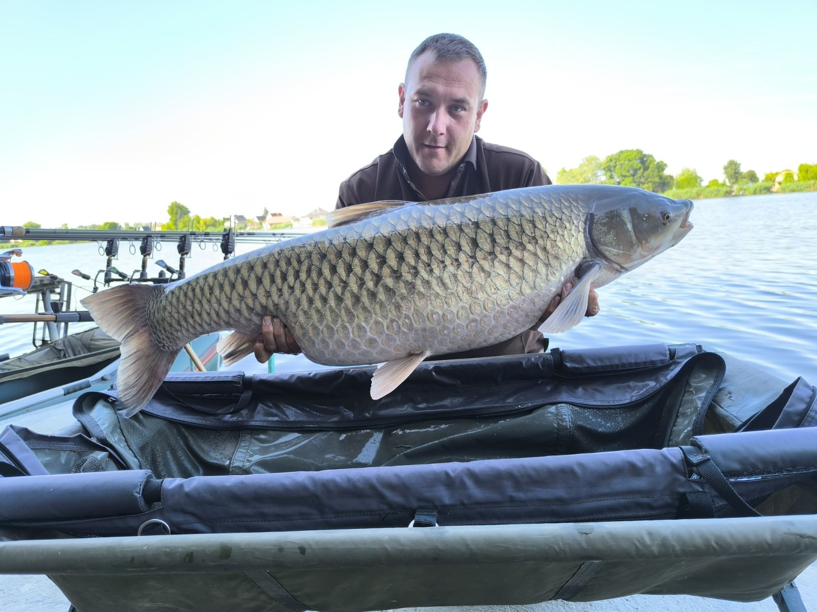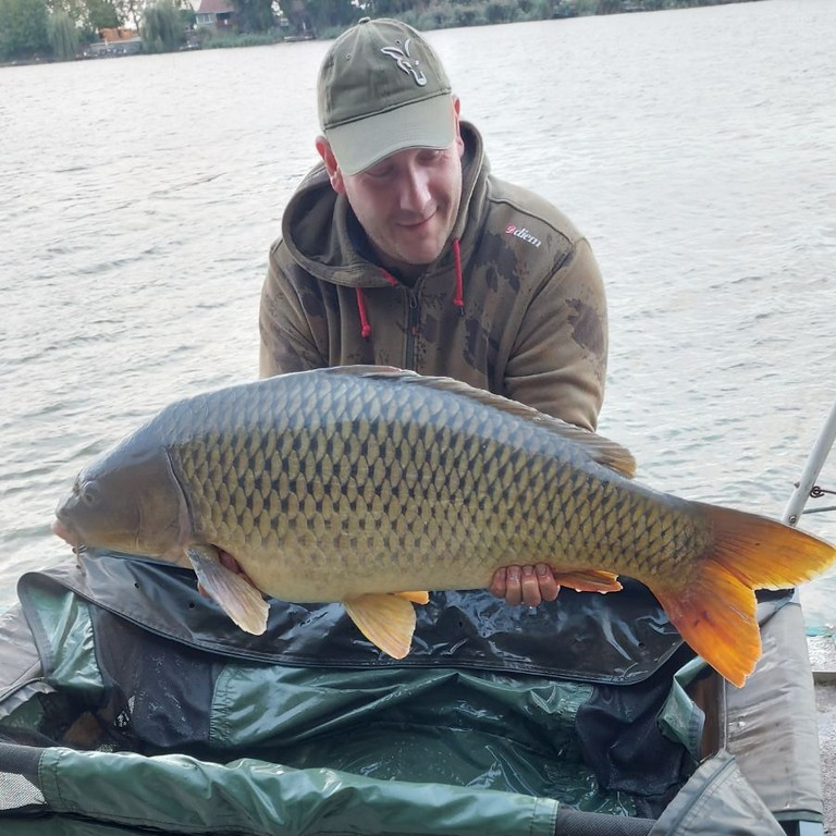 3 m-es 2,5 lbs bot, 0,35-ös monofil zsinór, 2-es horog. Bojli csali és etetés. Napos idő, szélcsend, 15 perces fárasztás csónakból.