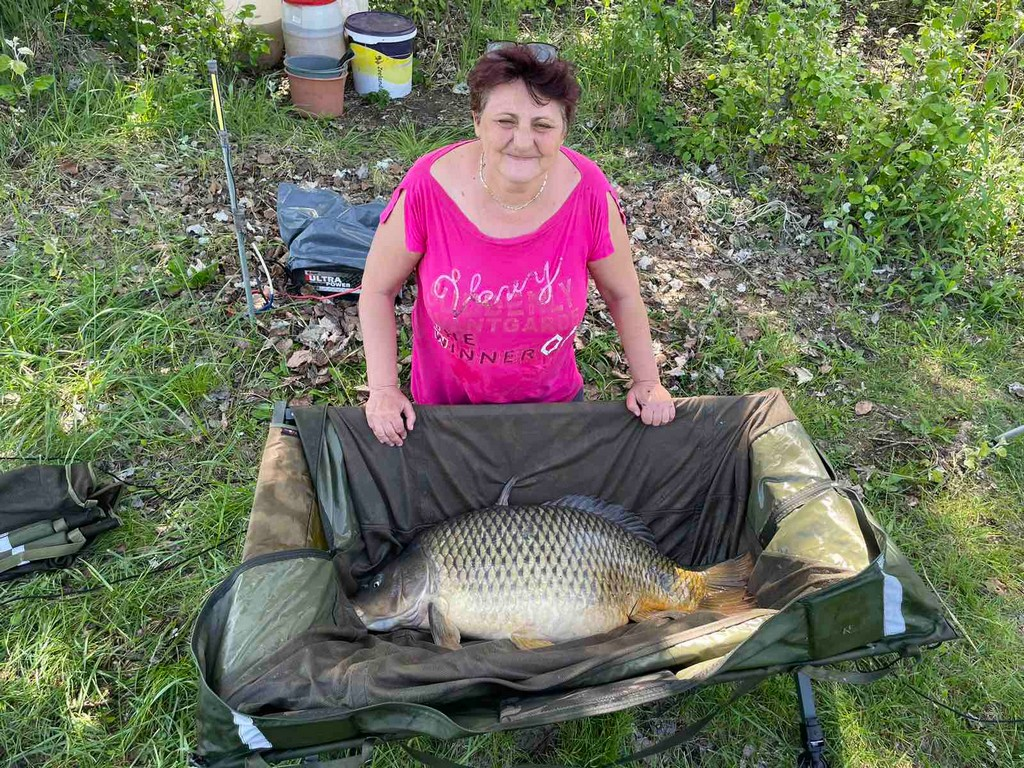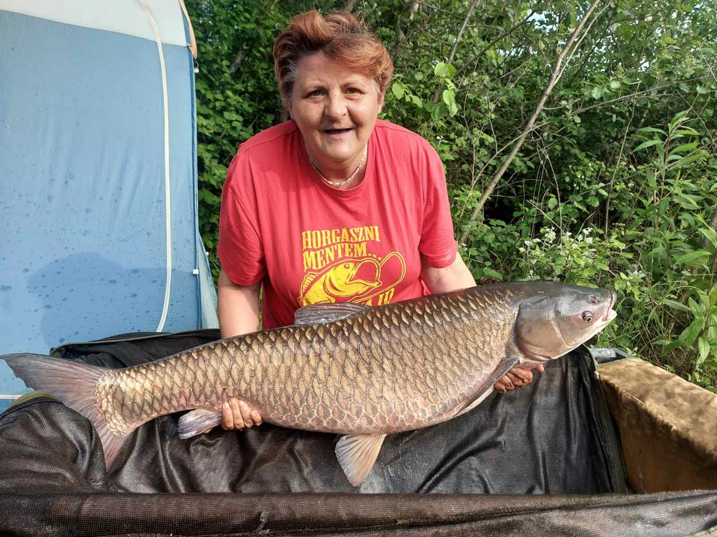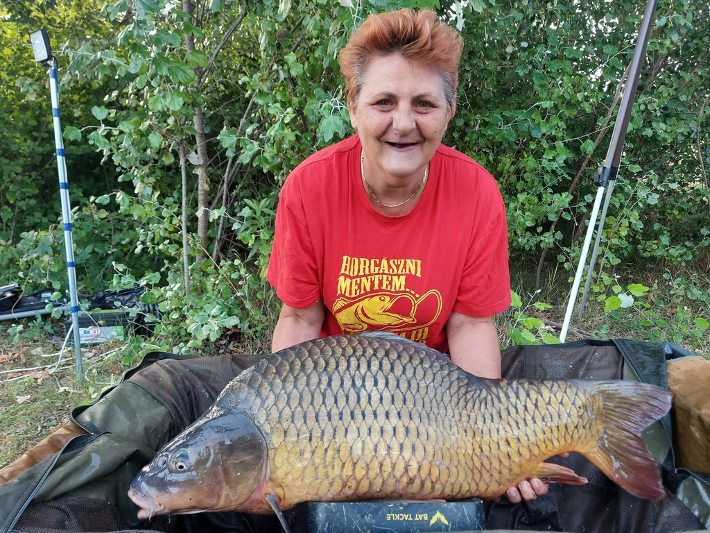 3,9 m-es bot, 0.30-as monofil zsinór, 4-es horog. Pop-up csali, etetés tigrismogyoróval. Napos idő, 10 perces fárasztás.