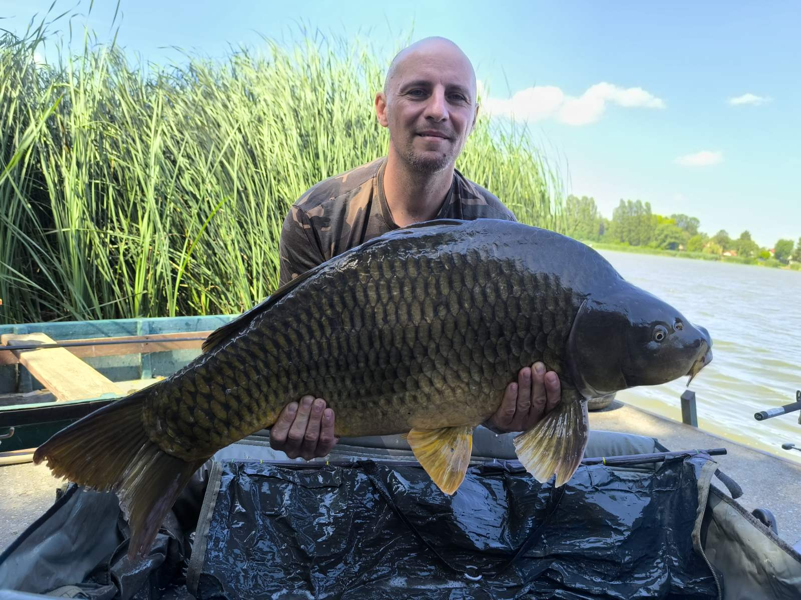3,6 m-es, 2,75 lbs bojlis bot, 0.31-es monofil zsinór, 4-es horog. Derült idő, szélcsend, 15 perces fárasztás.