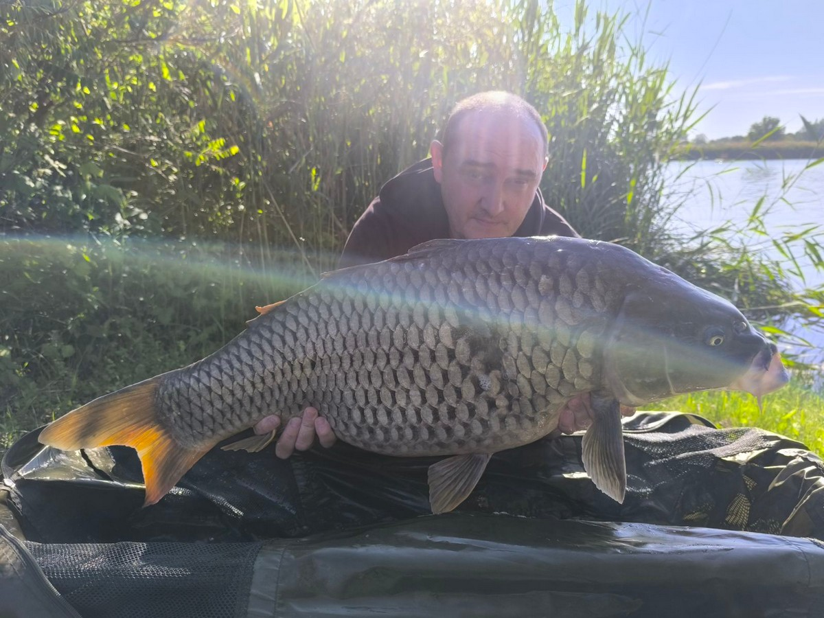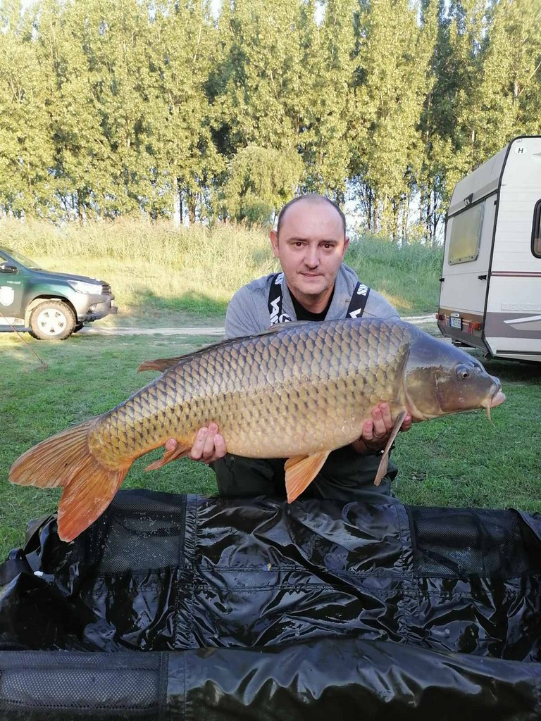 2,7 m-es bot, 0.35-ös monofil zsinór, 4-es horog. Bojli csali és etetés. Szélcsend, 15-20 perces fárasztás.