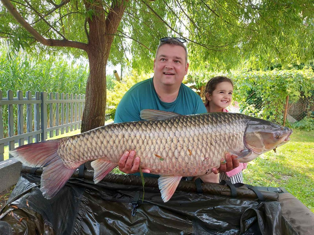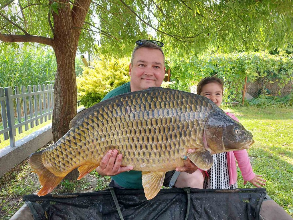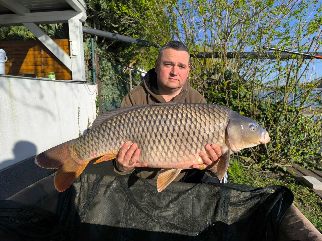 2,7 m-es 2,75 lbs bot, 0,28-as monofil zsinór, 6-os horog. Bojli csali és etetés. Derült idő, szélcsend, kb. 15 perces fárasztás csónakból.