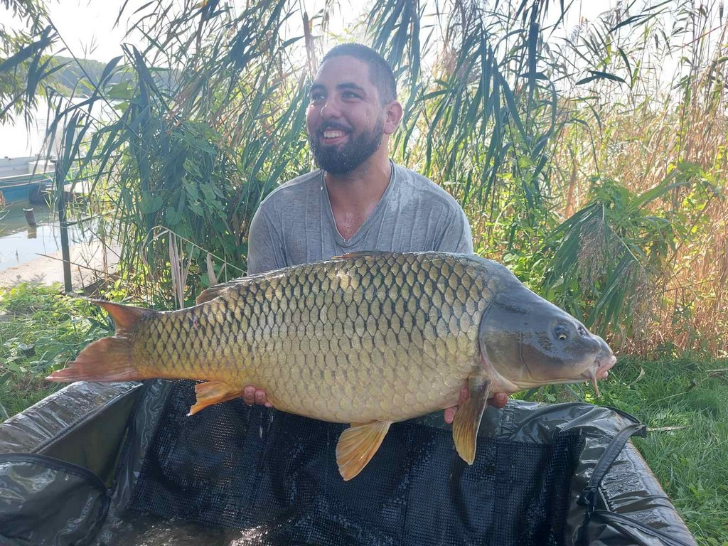 3 m-es 3,0 lbs bot, 0.35-ös monofil zsinór, 4-es horog. Bojli csali, etetés magmixszel. Napos idő, szélcsend, 20 perces fárasztás csónakból.