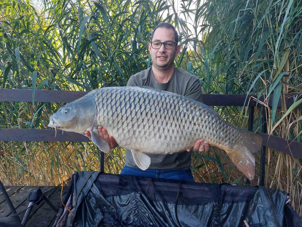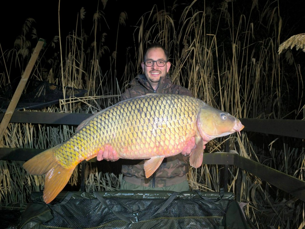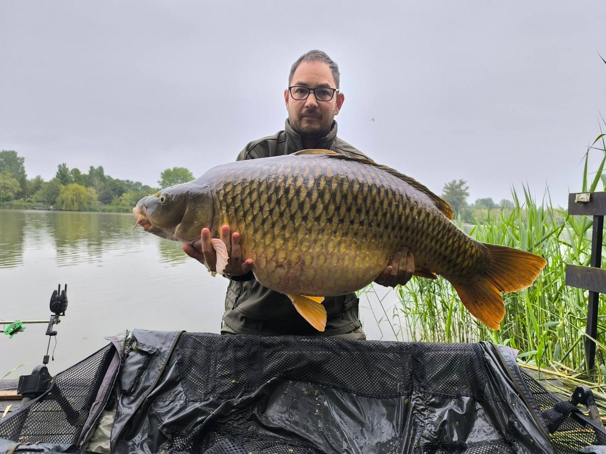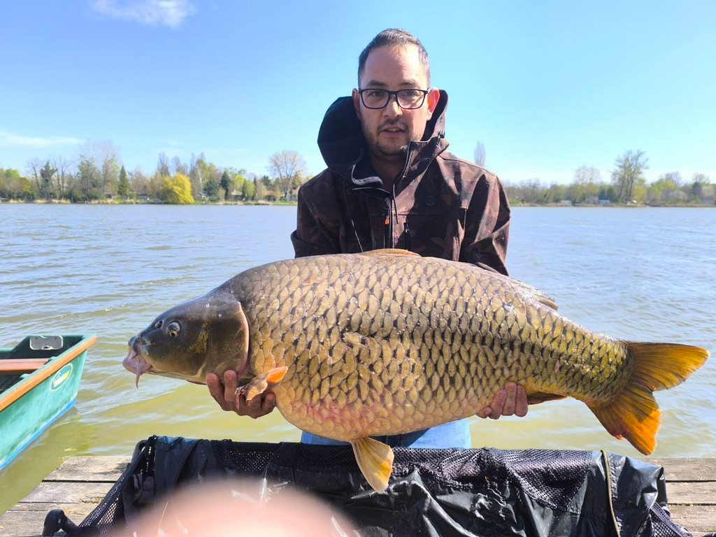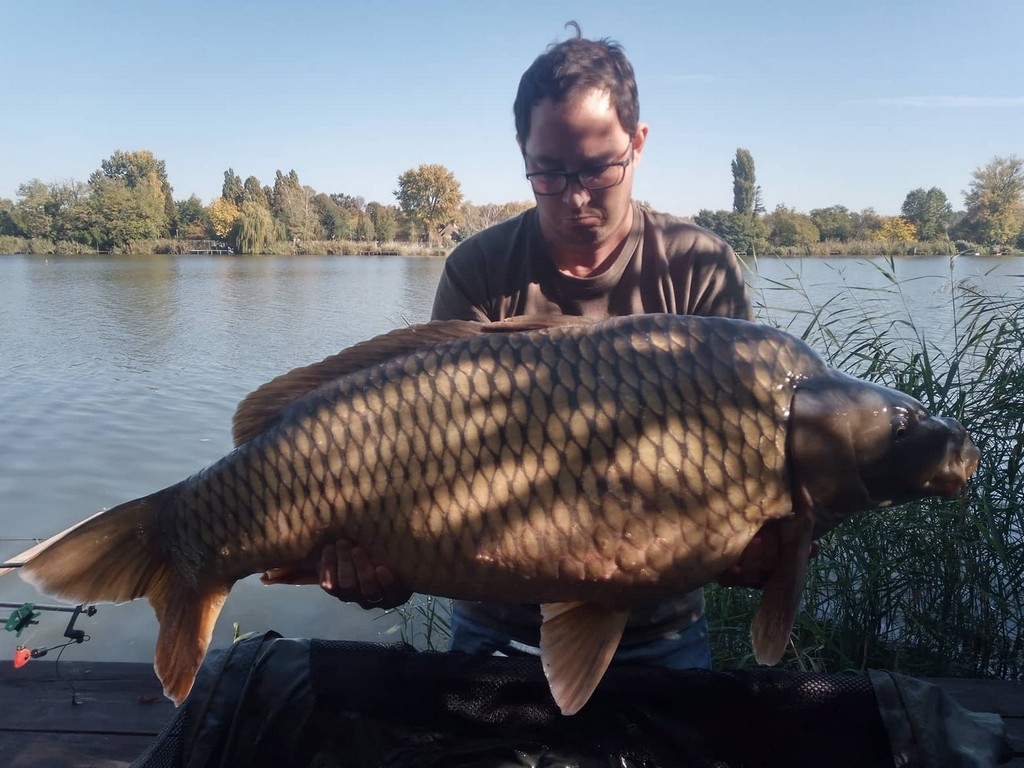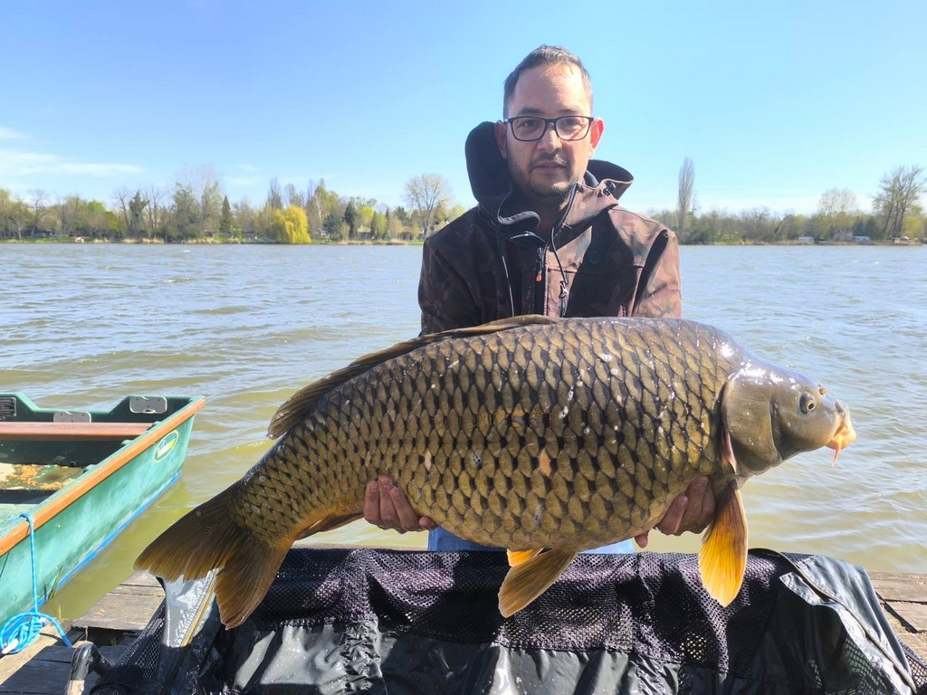 3,3 m-es 2,5 lbs bot, 0,33-as monofil zsinór, 6-os horog. Bojli csali és etetés. Ködös, enyhe idő, 20 perces fárasztás csónakból.