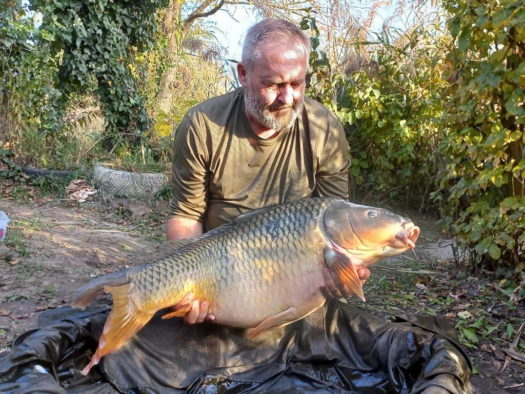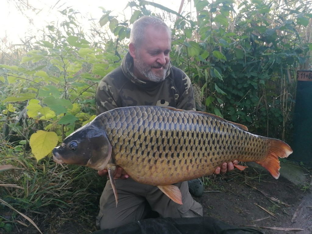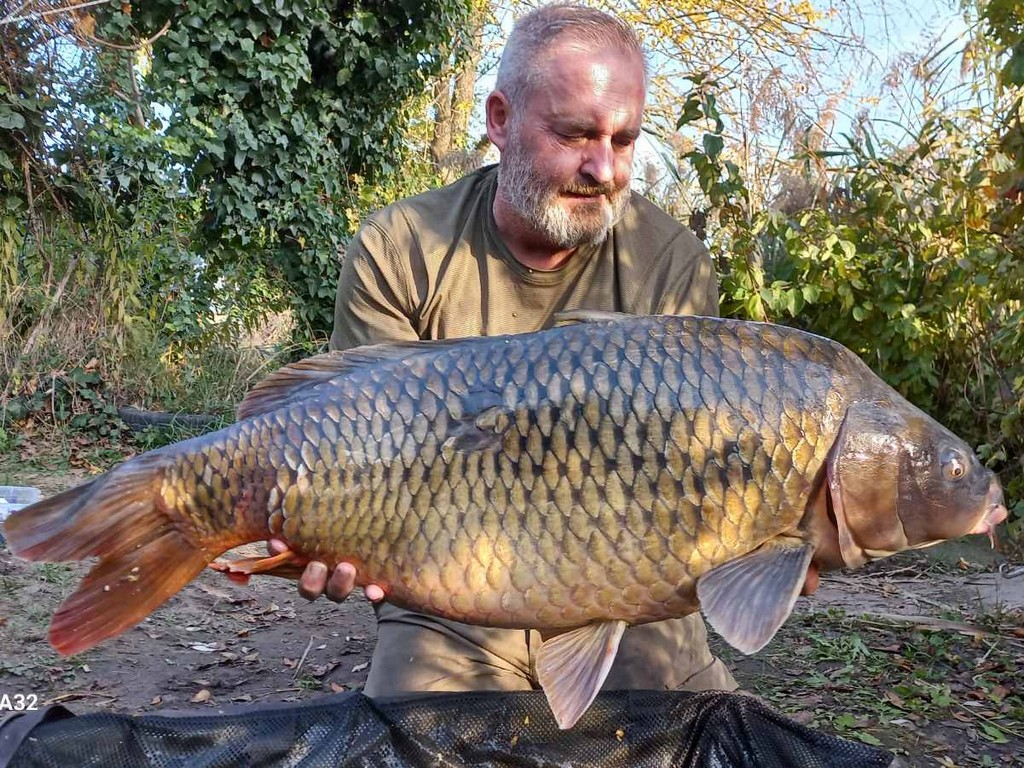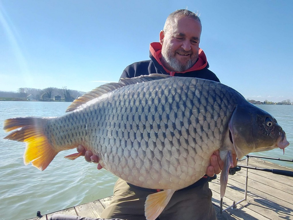 3,9 m-es 4,0 lbs bot, 0,30-as monofil zsinór, 4-es horog. Bojli csali és etetés. Hideg, szeles idő, 20 perces fárasztás csónakból.