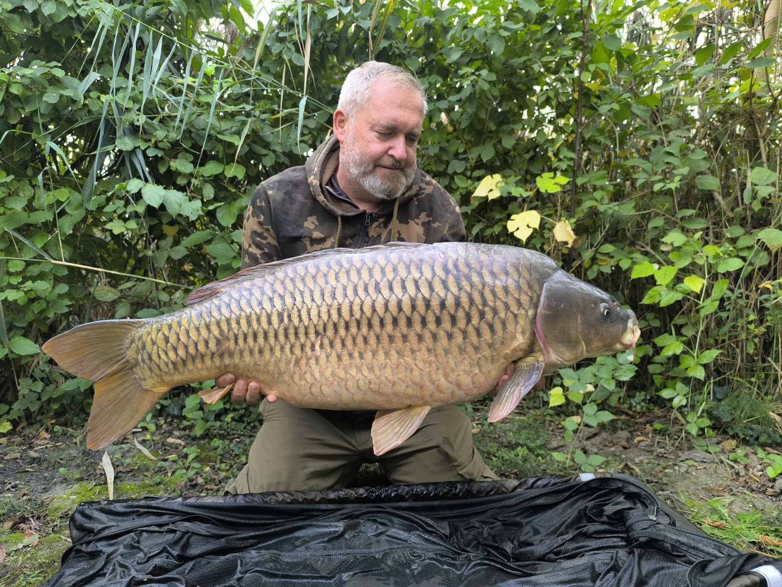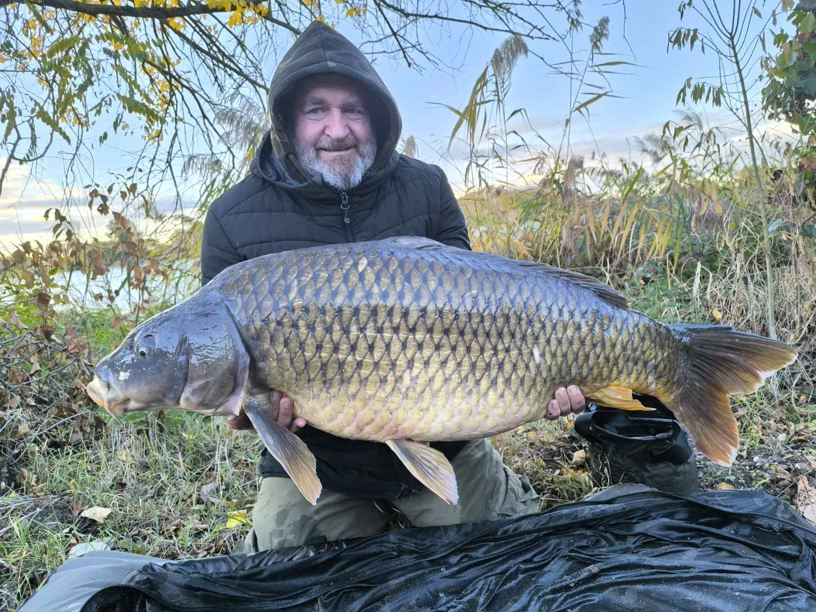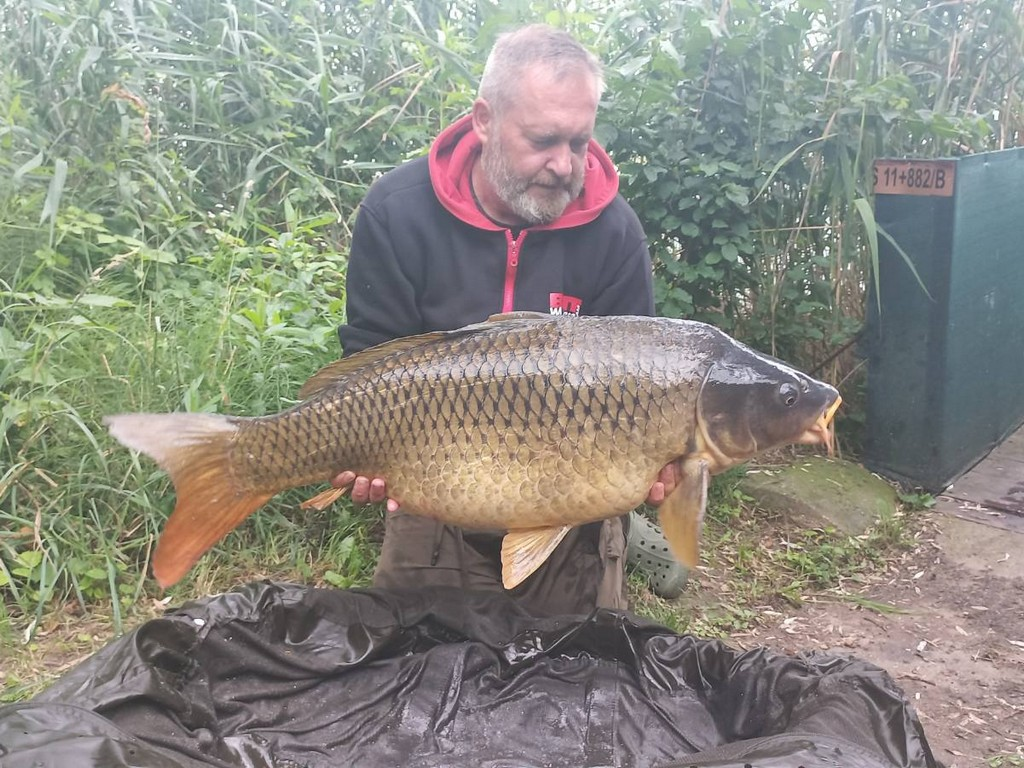 3,9 m-es 4,0 lbs bot, 0,30-as monofil zsinór, 4-es horog. Bojli csali és etetés. Hideg, szeles idő, 20 perces fárasztás csónakból.