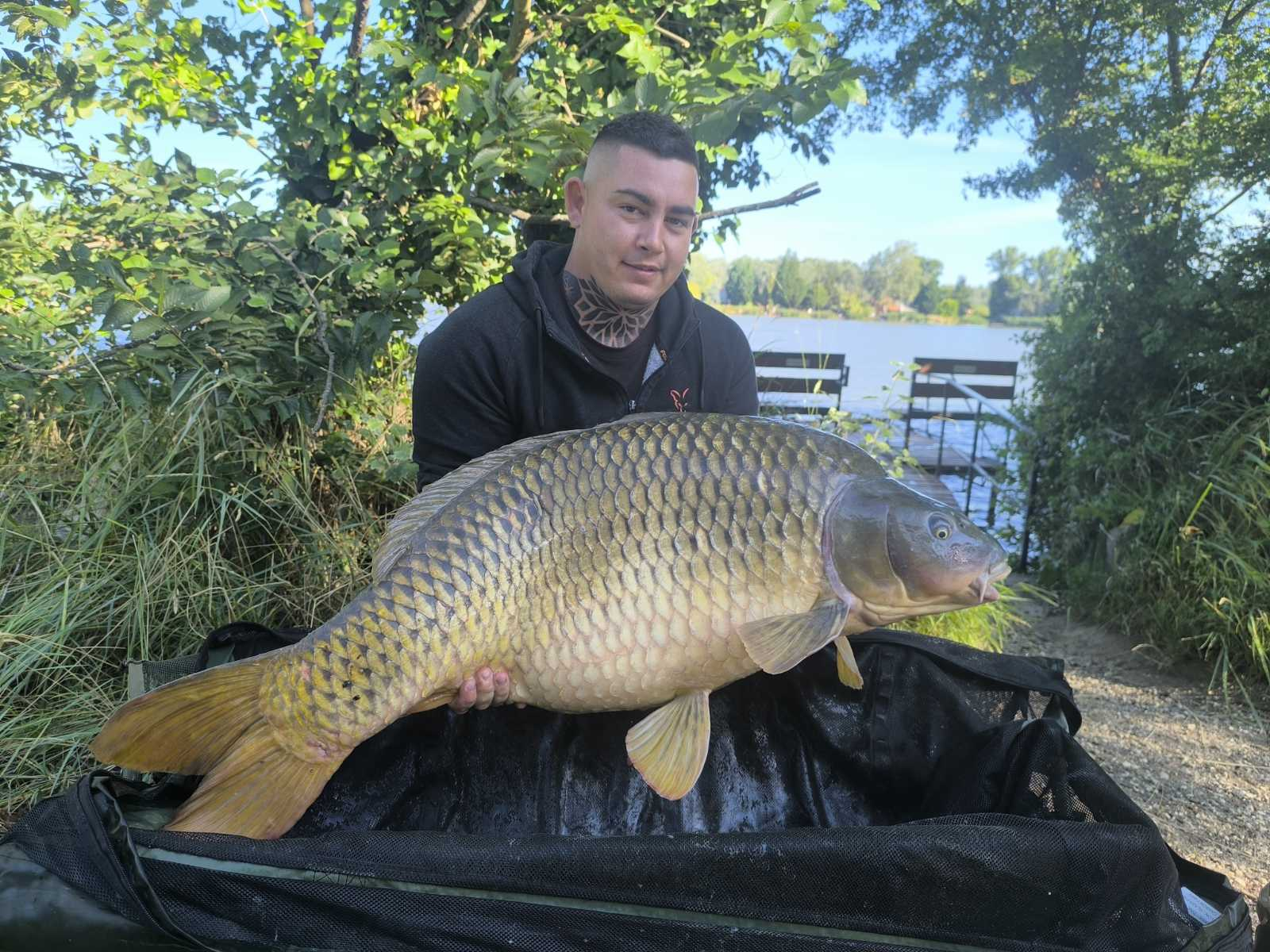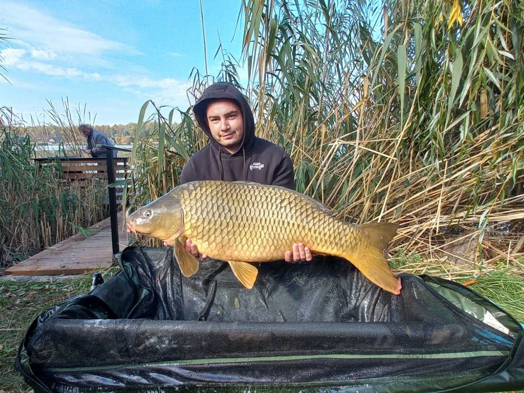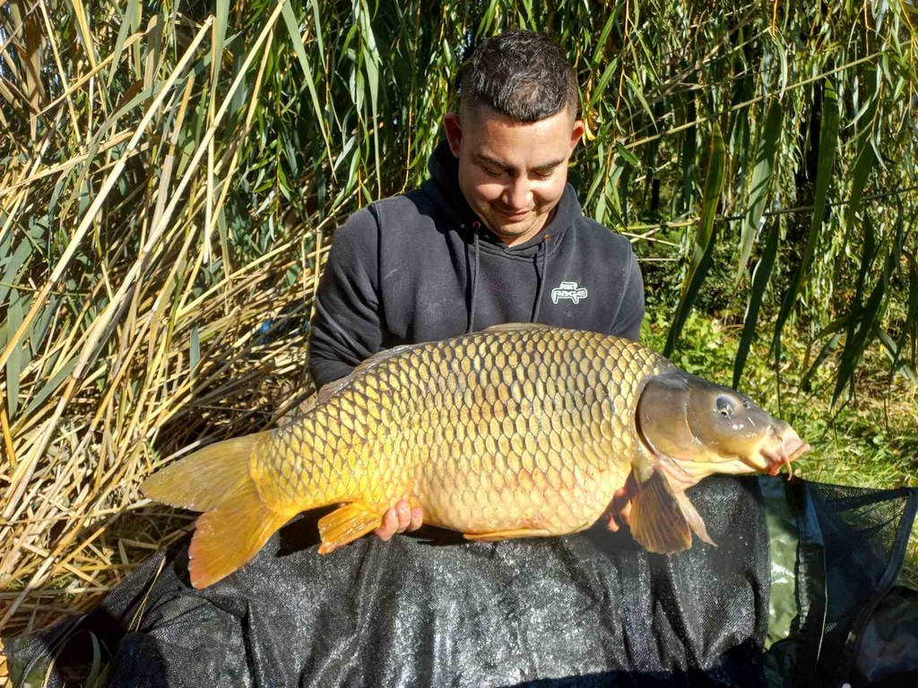 3 m-es 2,75 lbs bot, 0,35-ös monofil zsinór, 4-es horog. Bojli csali és etetés. Derült idő, szélcsend, kb. 15 perces fárasztás partról.