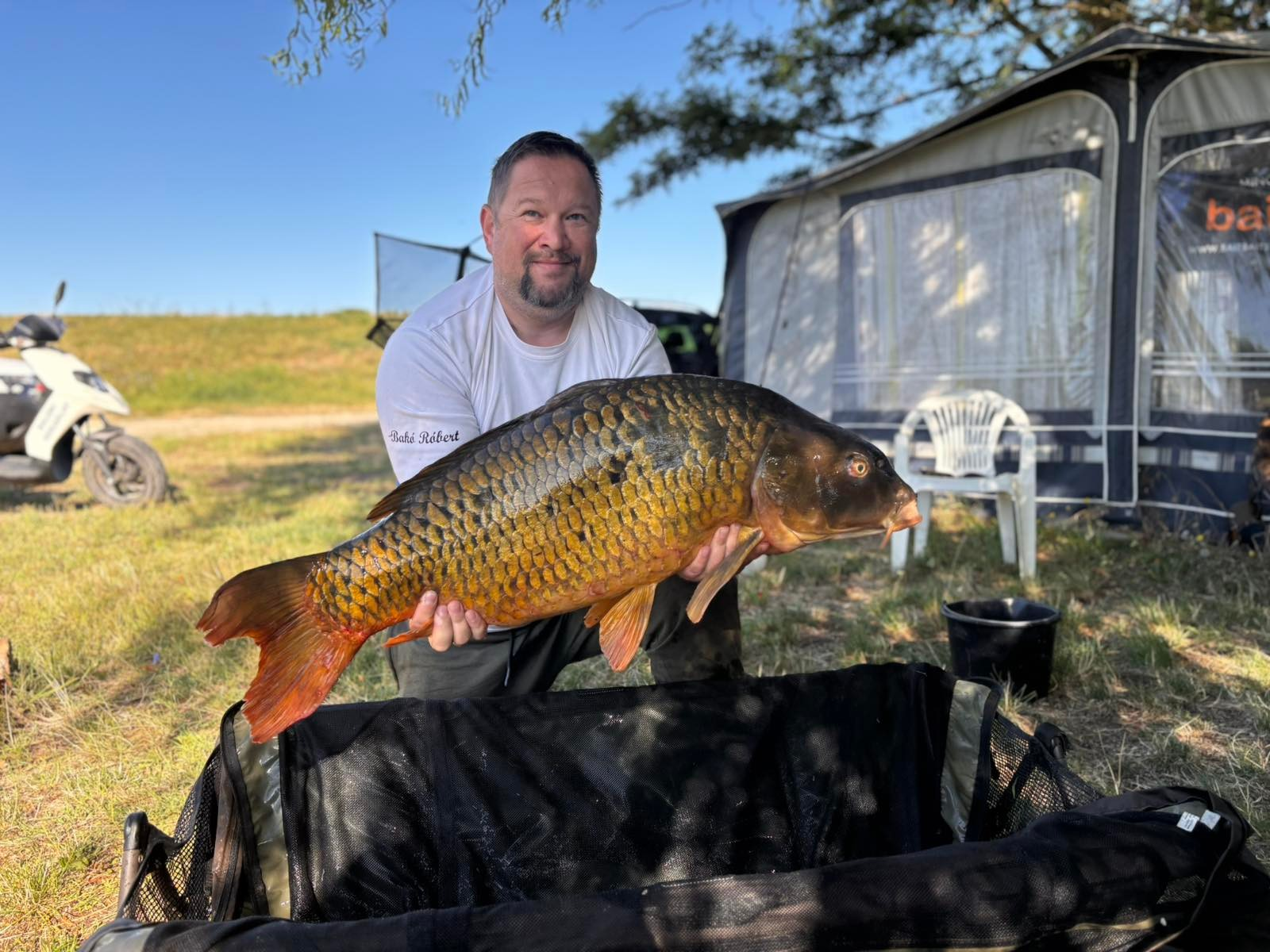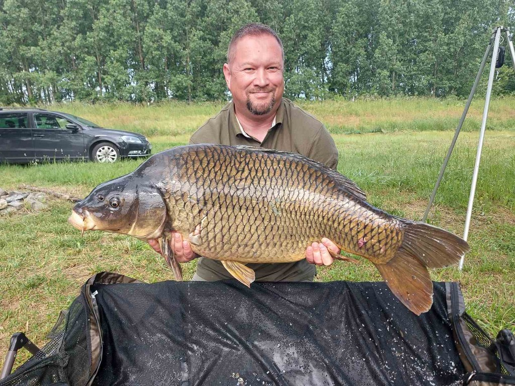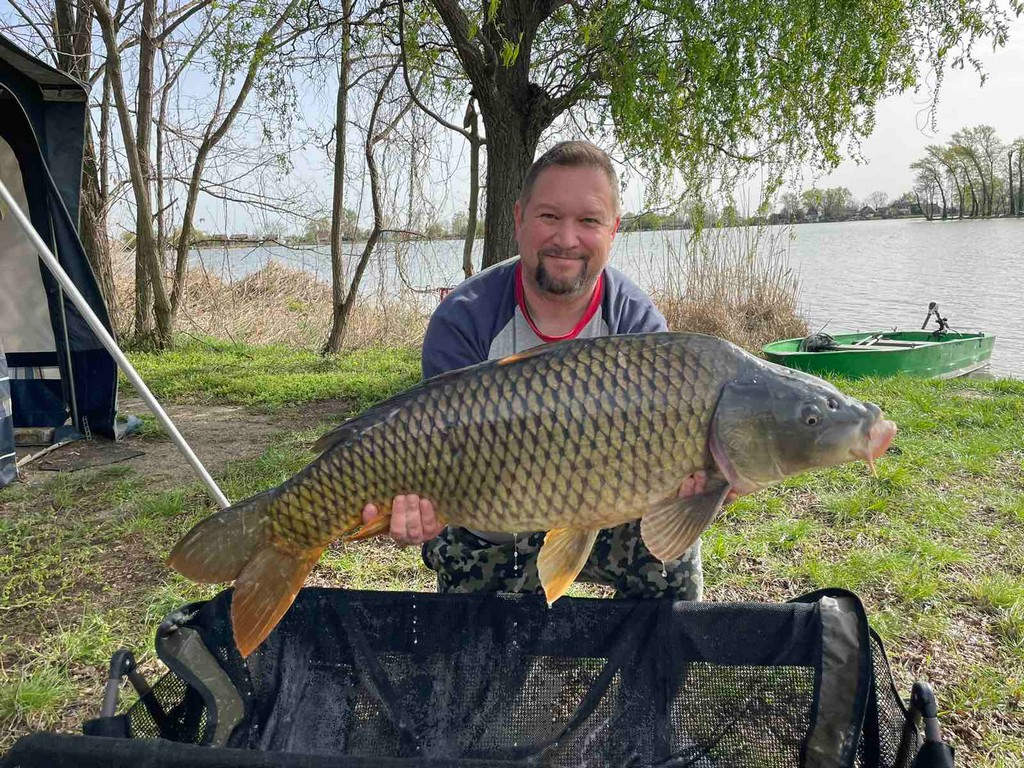3 m-es 2,75 lbs bot, 0,35-ös monofil zsinór, 6-os horog. Bojli csali és etetés. Hűvös, szeles idő, 15 perces fárasztás partról.