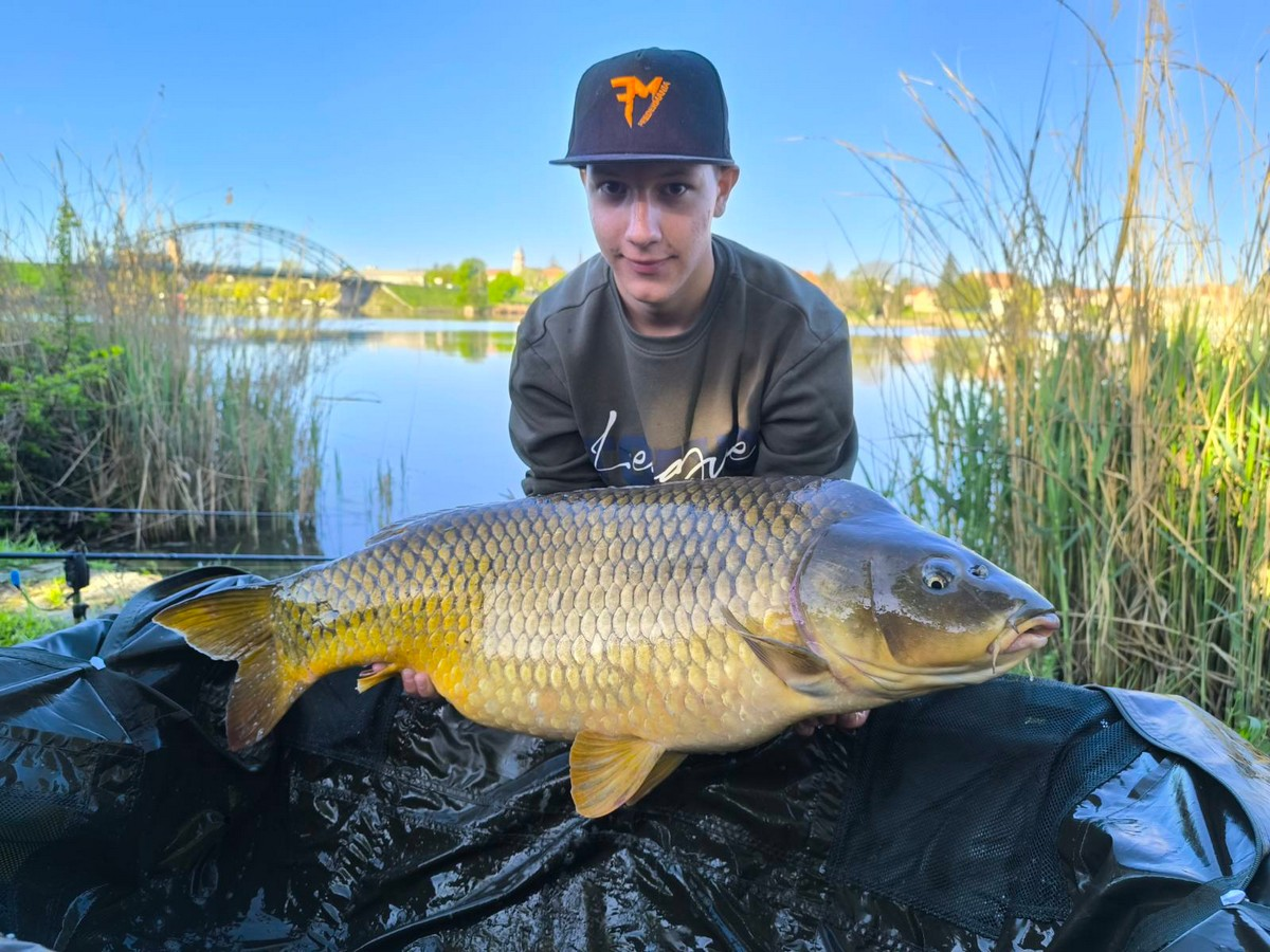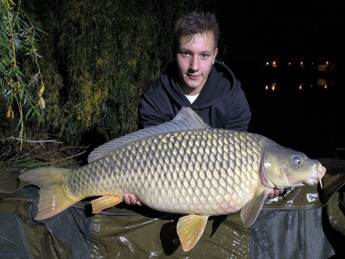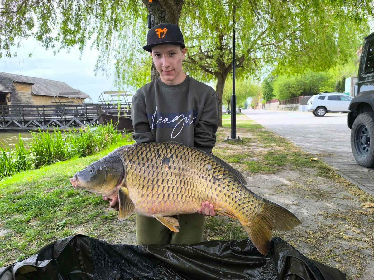 3 m-es 3,0 lbs bot, 0,35-ös monofil zsinór, 4-es horog. Bojli csali és etetés. Derült idő, szélcsend, kb. 20 perces fárasztás partról.