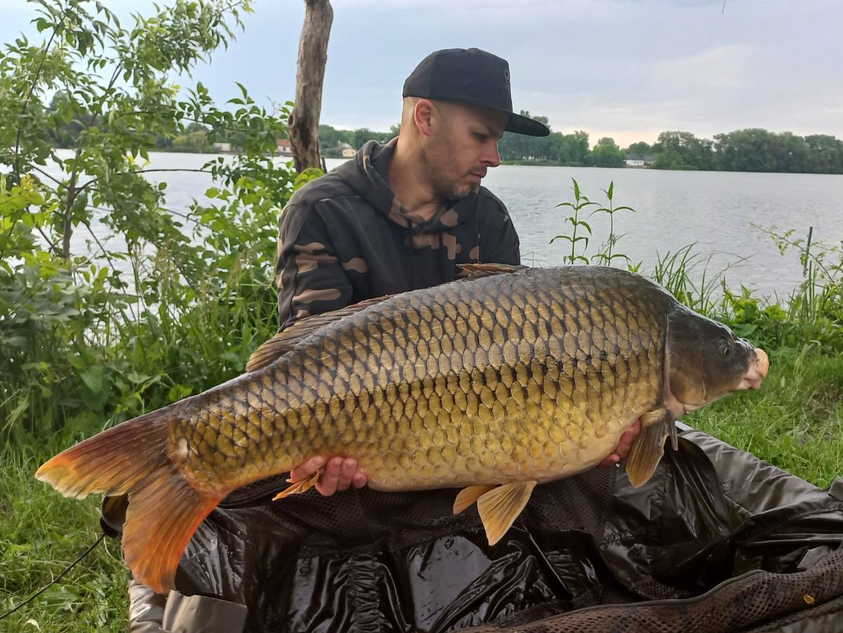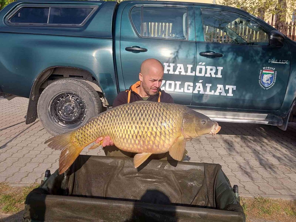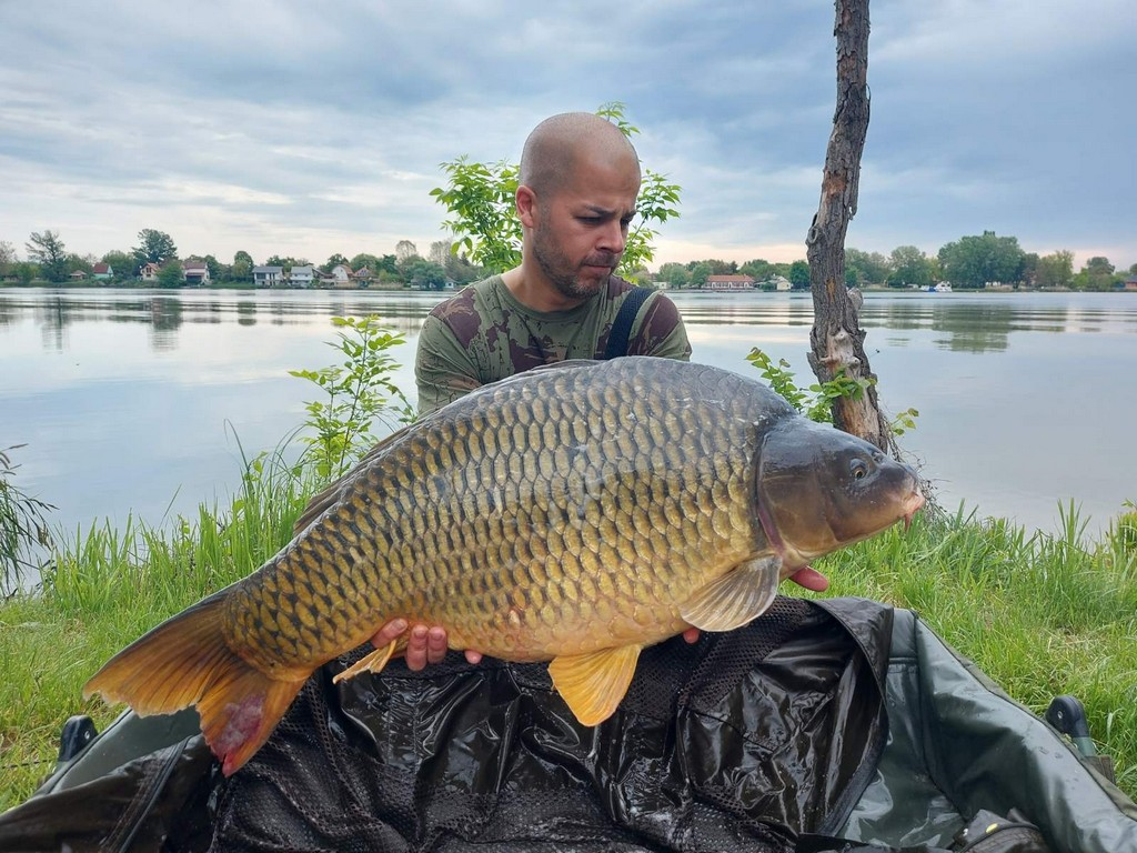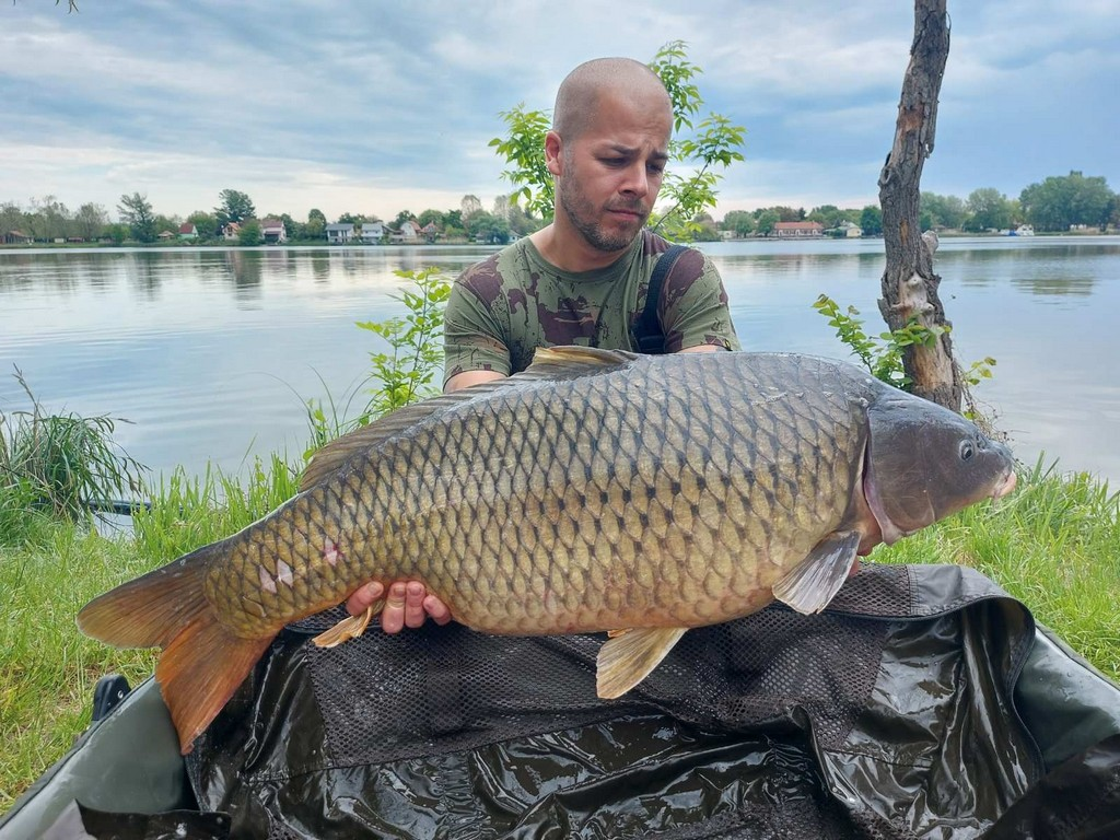 3,6 m-es 3,0 lbs bot, 0,35-ös monofil zsinór, 2-es horog. Bojli csali és etetés. Borongós, szeles idő, 20 perces fárasztás partról.
