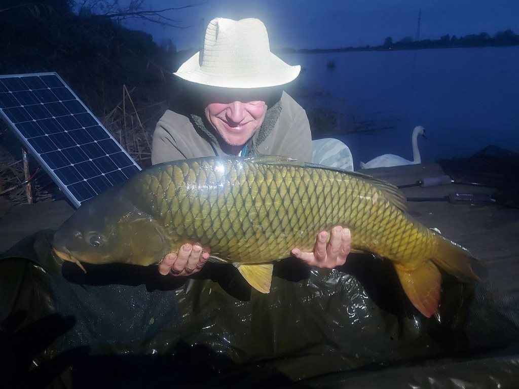 3,6 m-es bot, 0.30-as monofil zsinór, 2-es horog. Bojli csali és etetés. Esős, szeles idő, 20 perces fárasztás.