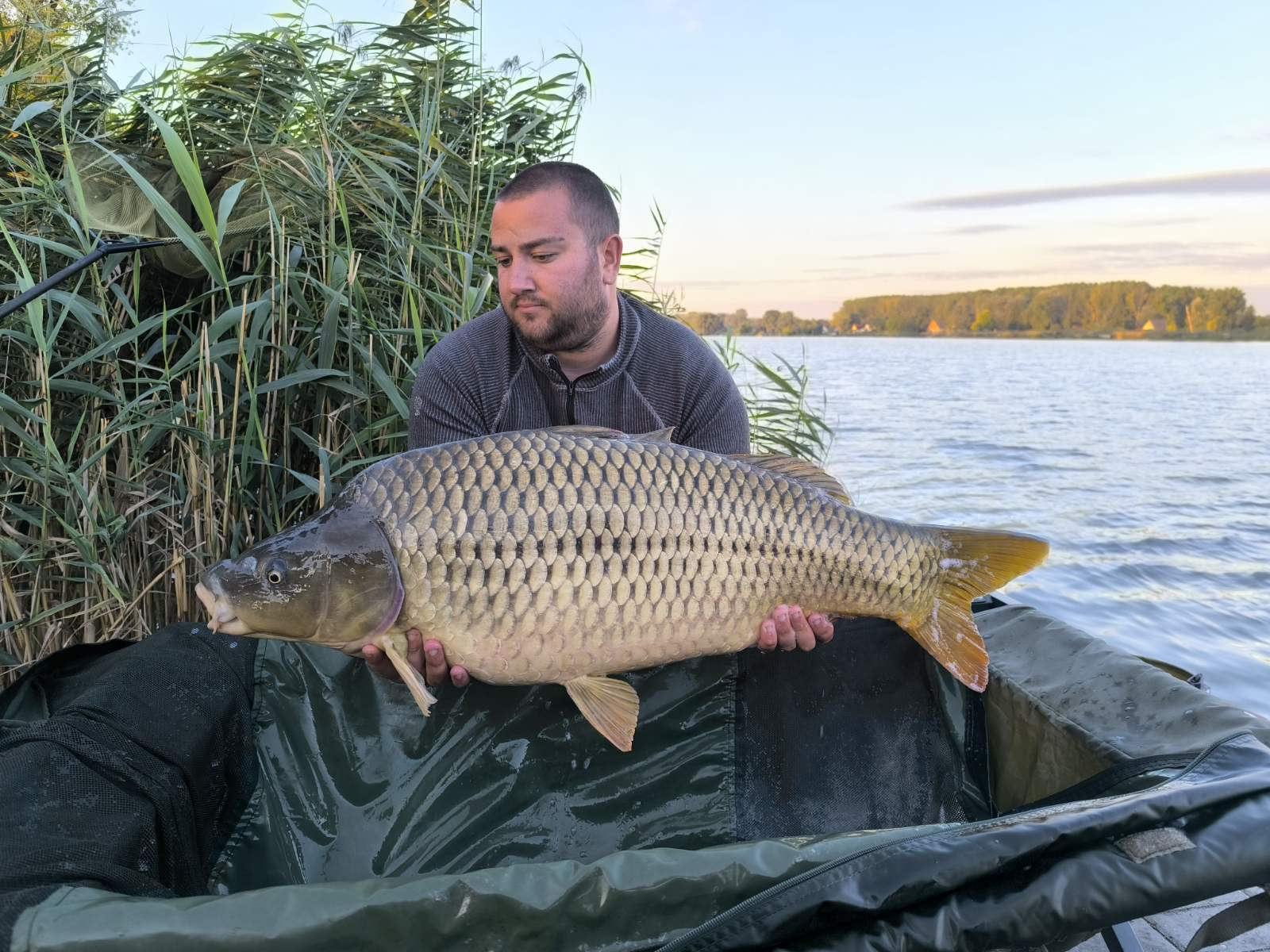 3 m-es 2,75 lbs bot, 0,35-ös monofil zsinór, 2-es horog. Bojli csali és etetés. Erős szél, 10 perces fárasztás partról.